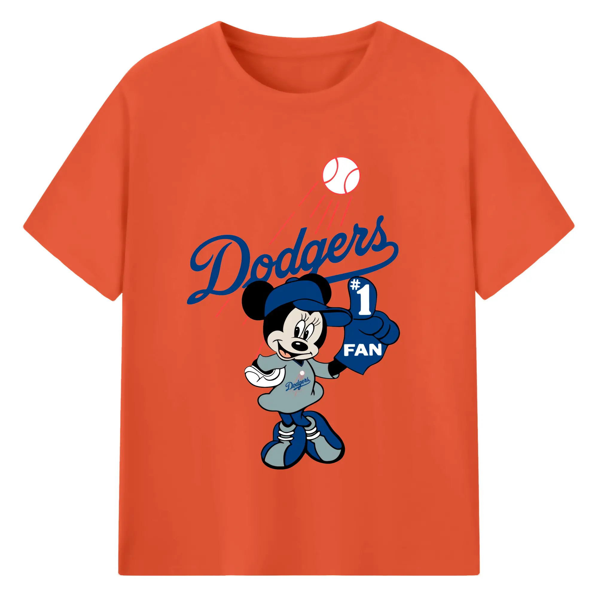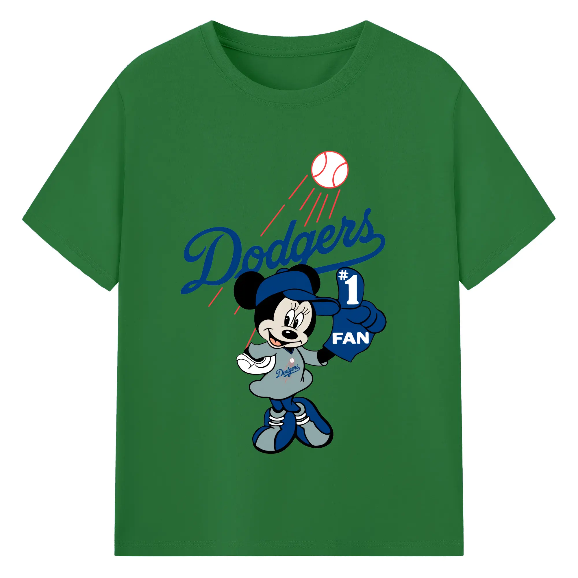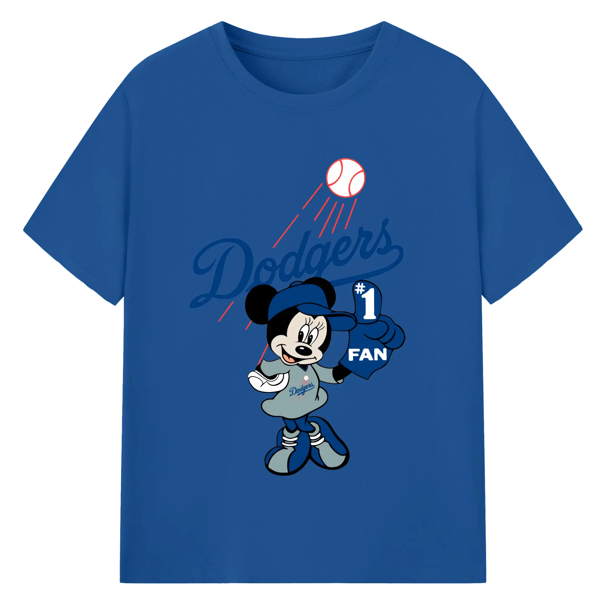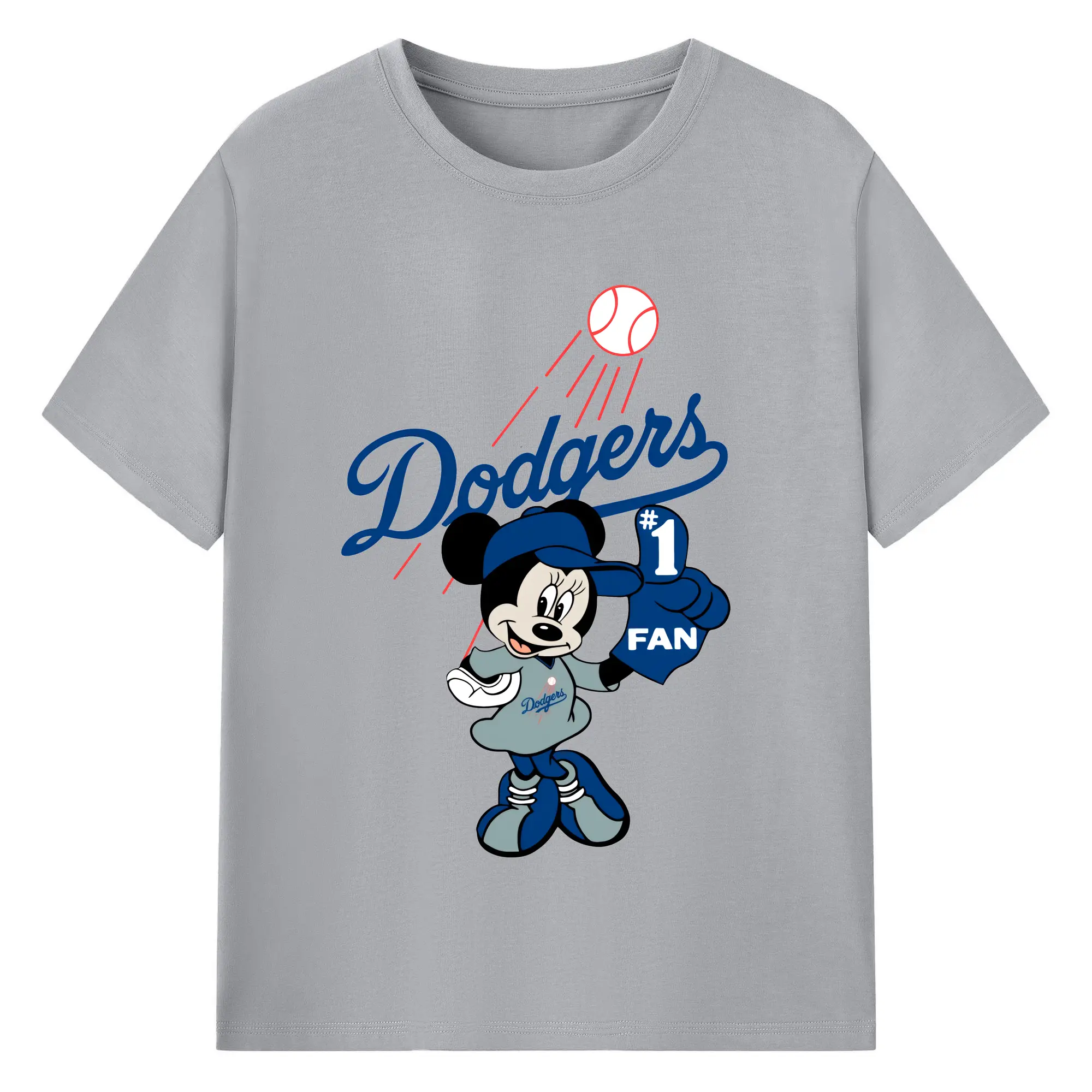 Minnie Mouse Los Angeles Dodgers Baseball - 180g Cotton T-Shirt With Front Heat Transfer Print – Soft, Lightweight, Fitted Design – Comfortable Casual Wear For Sports & Everyday Use