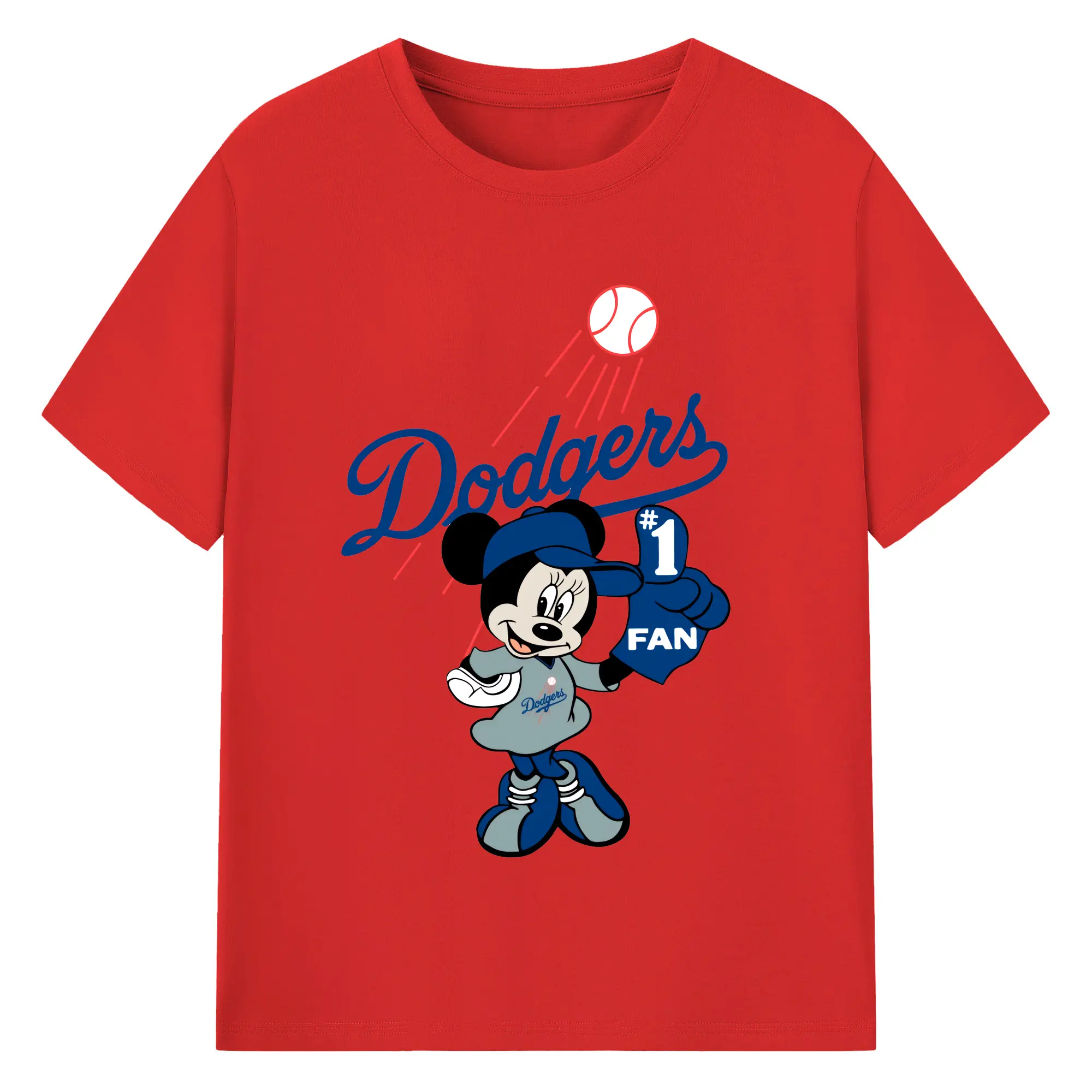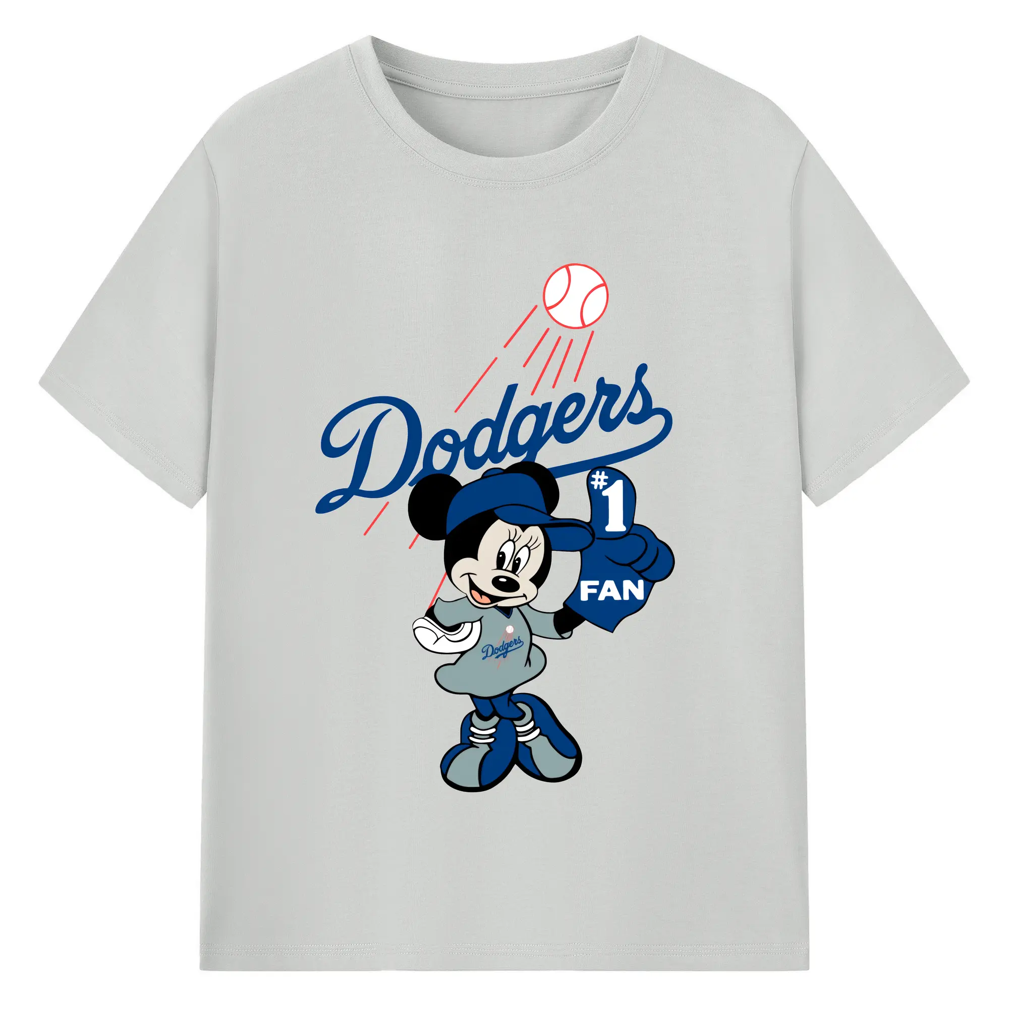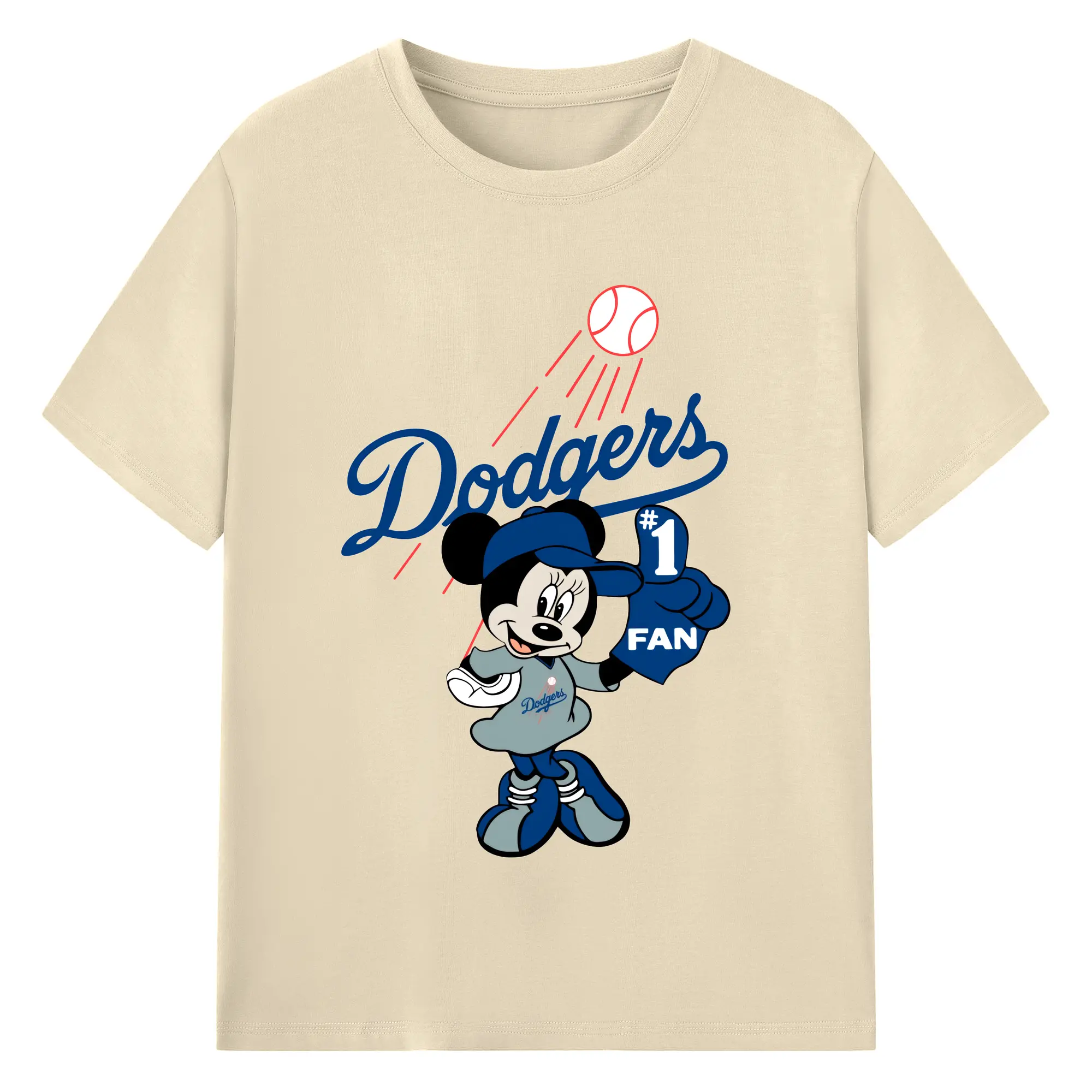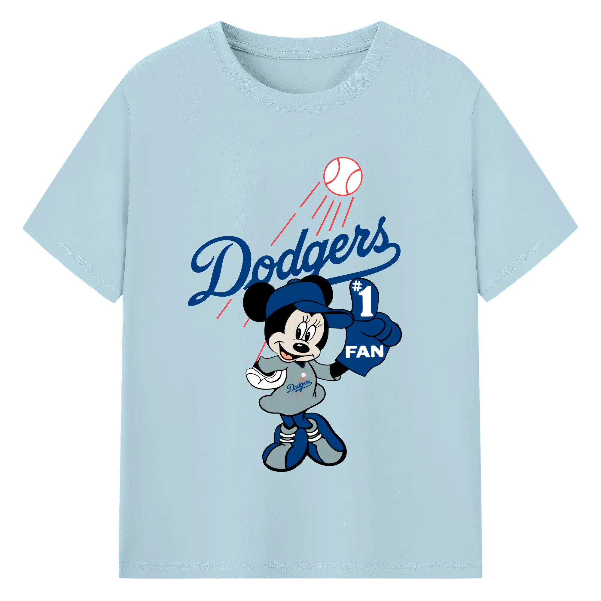 Minnie Mouse Los Angeles Dodgers Baseball - Combed Cotton T-Shirt 180g With Front Heat Transfer Print – Soft, Lightweight, Fitted Design – Stylish Casual Wear For Sports & Everyday Use