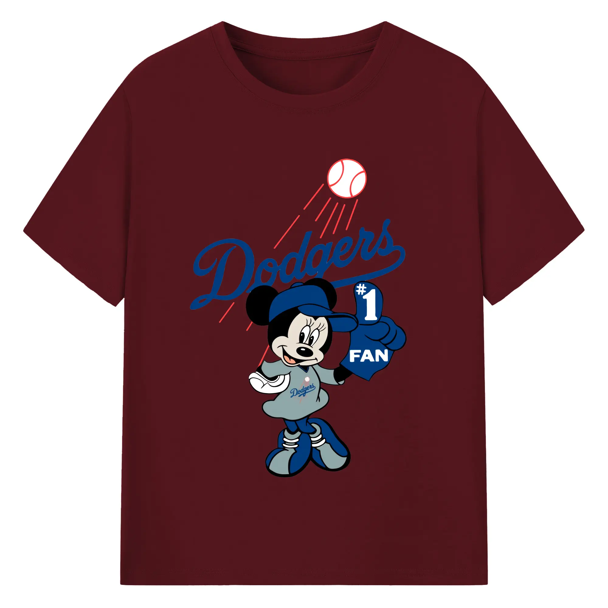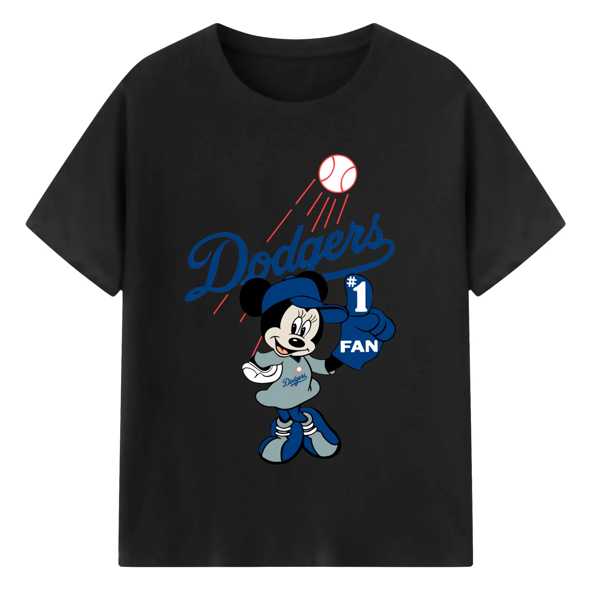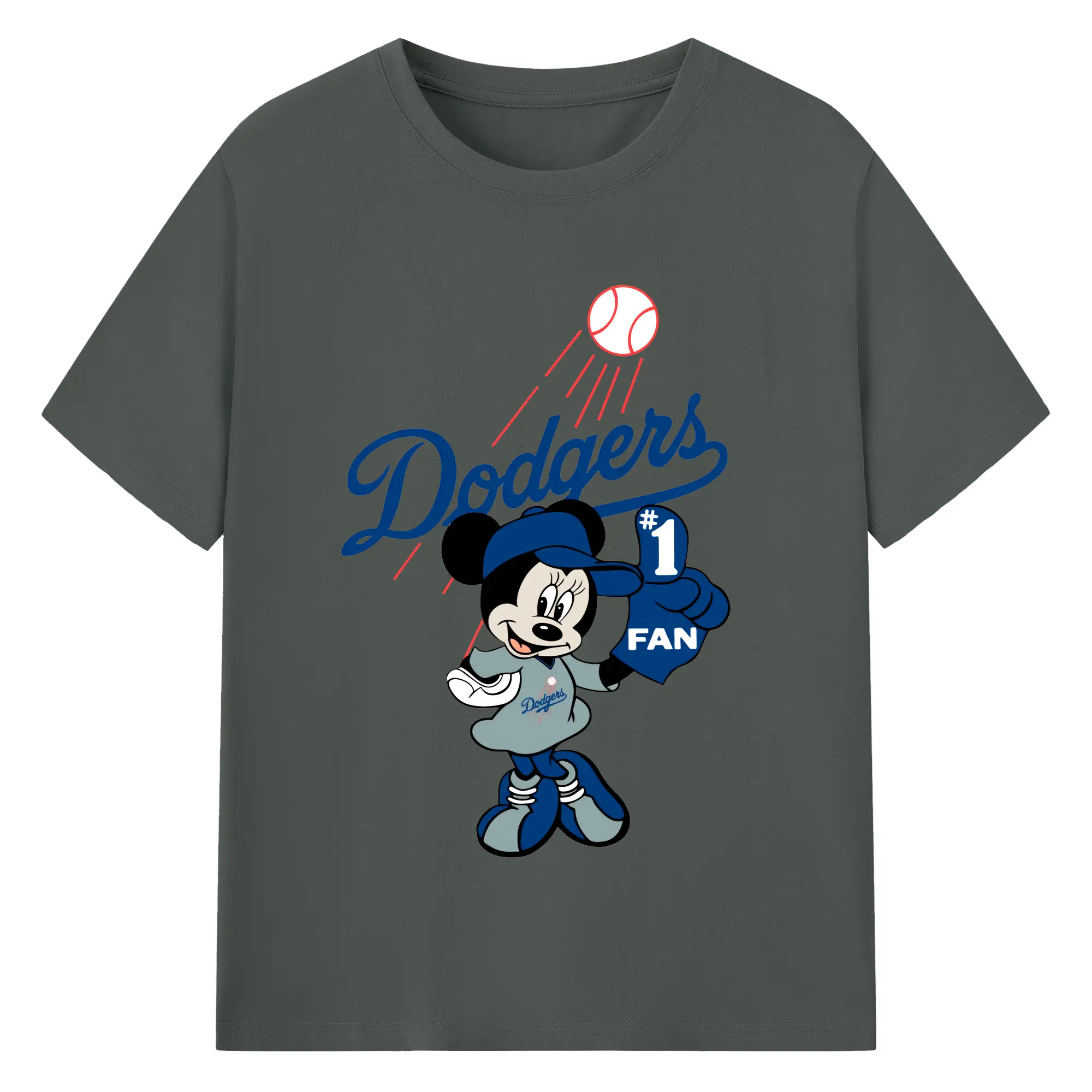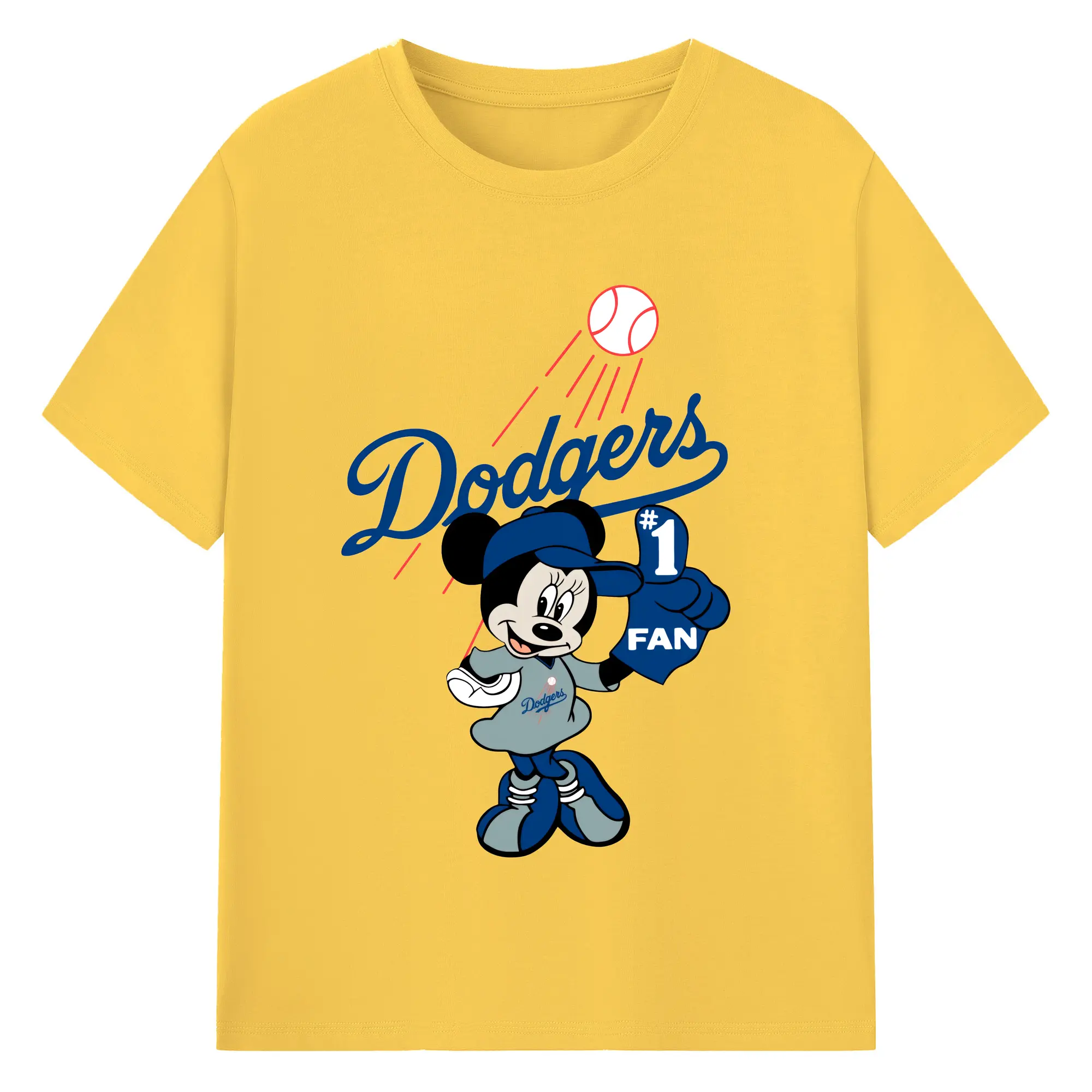 Minnie Mouse Los Angeles Dodgers Baseball - Combed Cotton T-Shirt 180g With Front Heat Transfer Print – Soft, Lightweight, Fitted Design – Stylish Casual Wear For Sports & Everyday Use