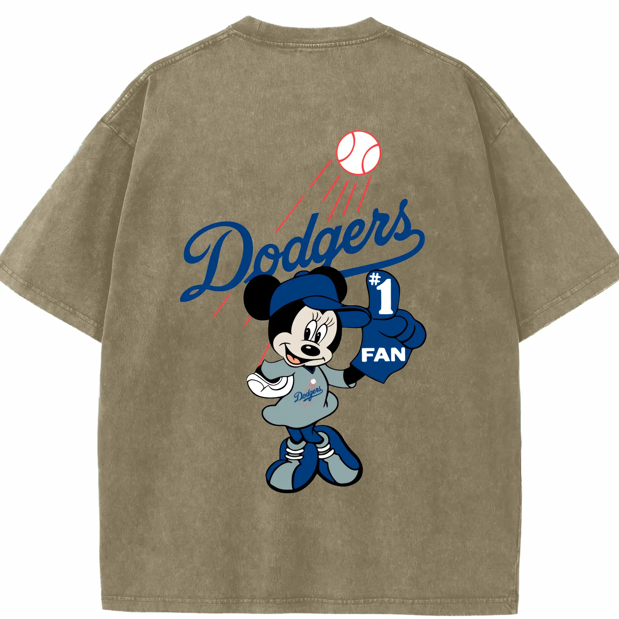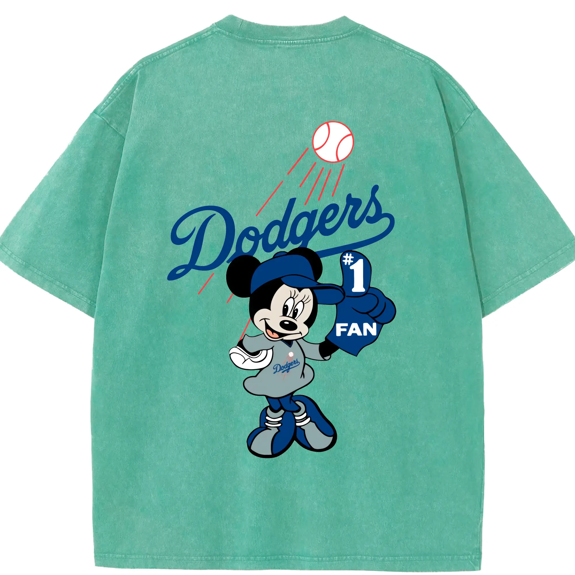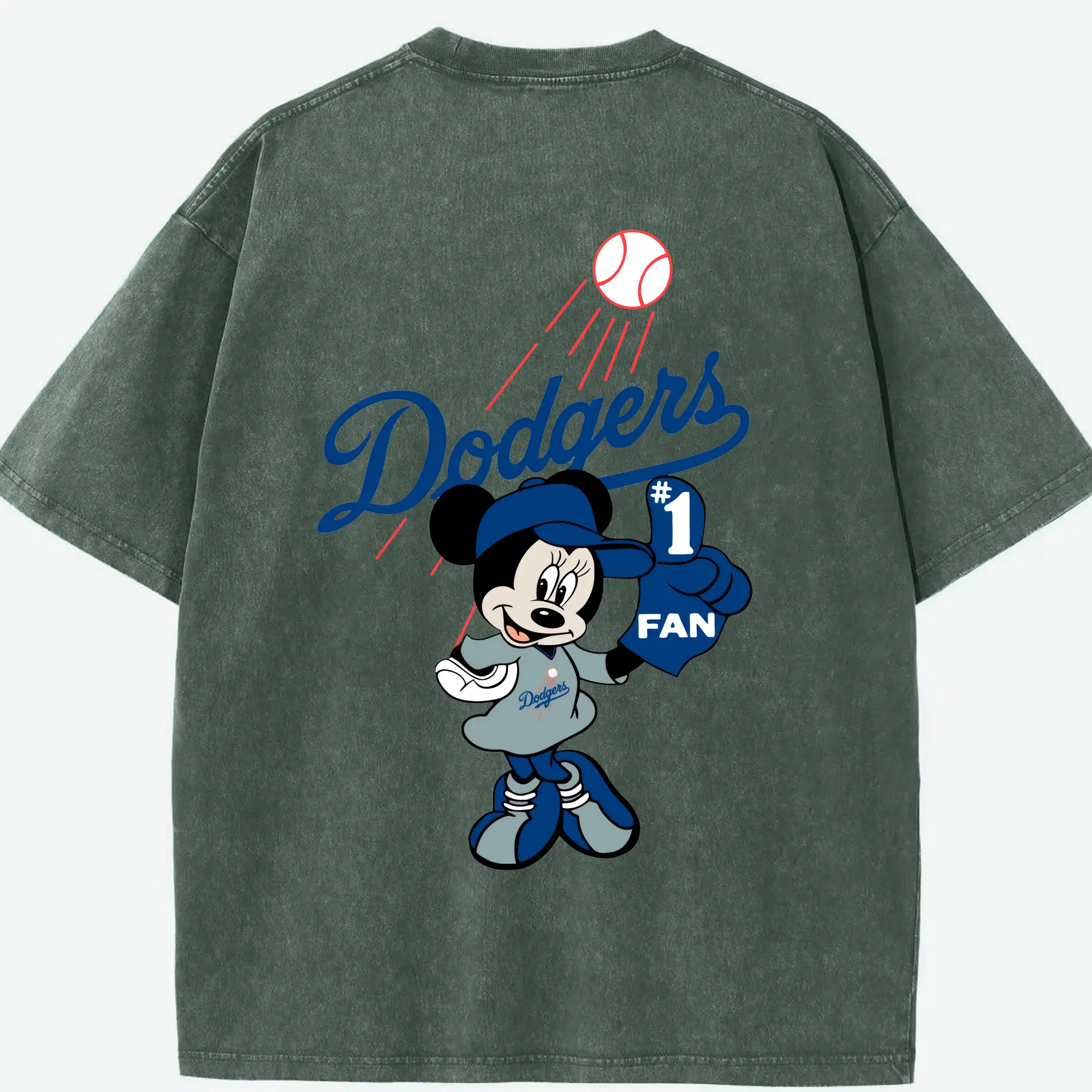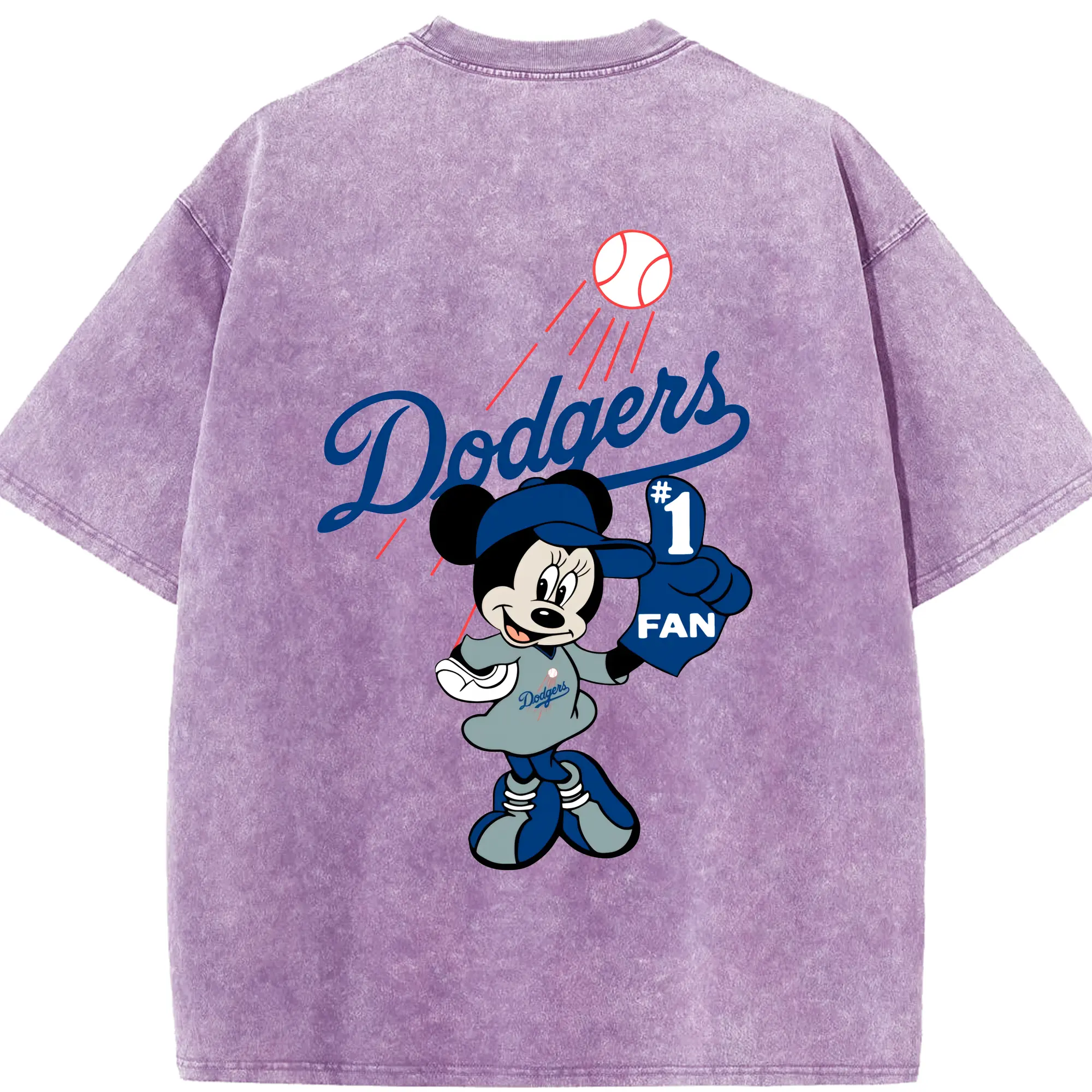 Minnie Mouse Los Angeles Dodgers Baseball - Washed Vintage 230g Cotton Oversized T-Shirt With Back Heat Transfer Print – Soft, Lightweight & Stylish – Comfortable Casual Wear For Sports & Everyday Use