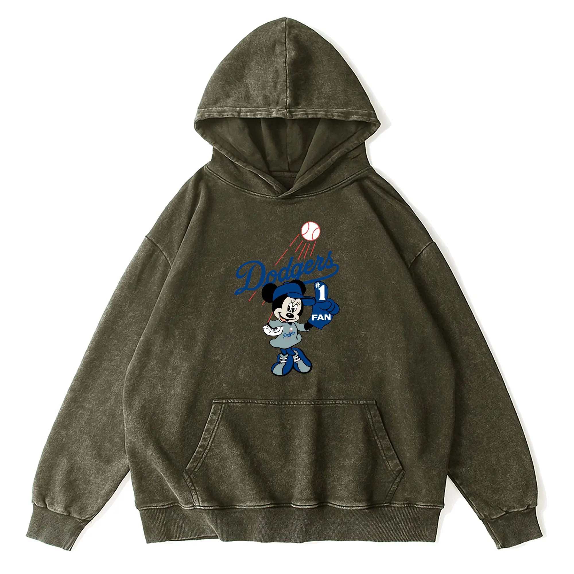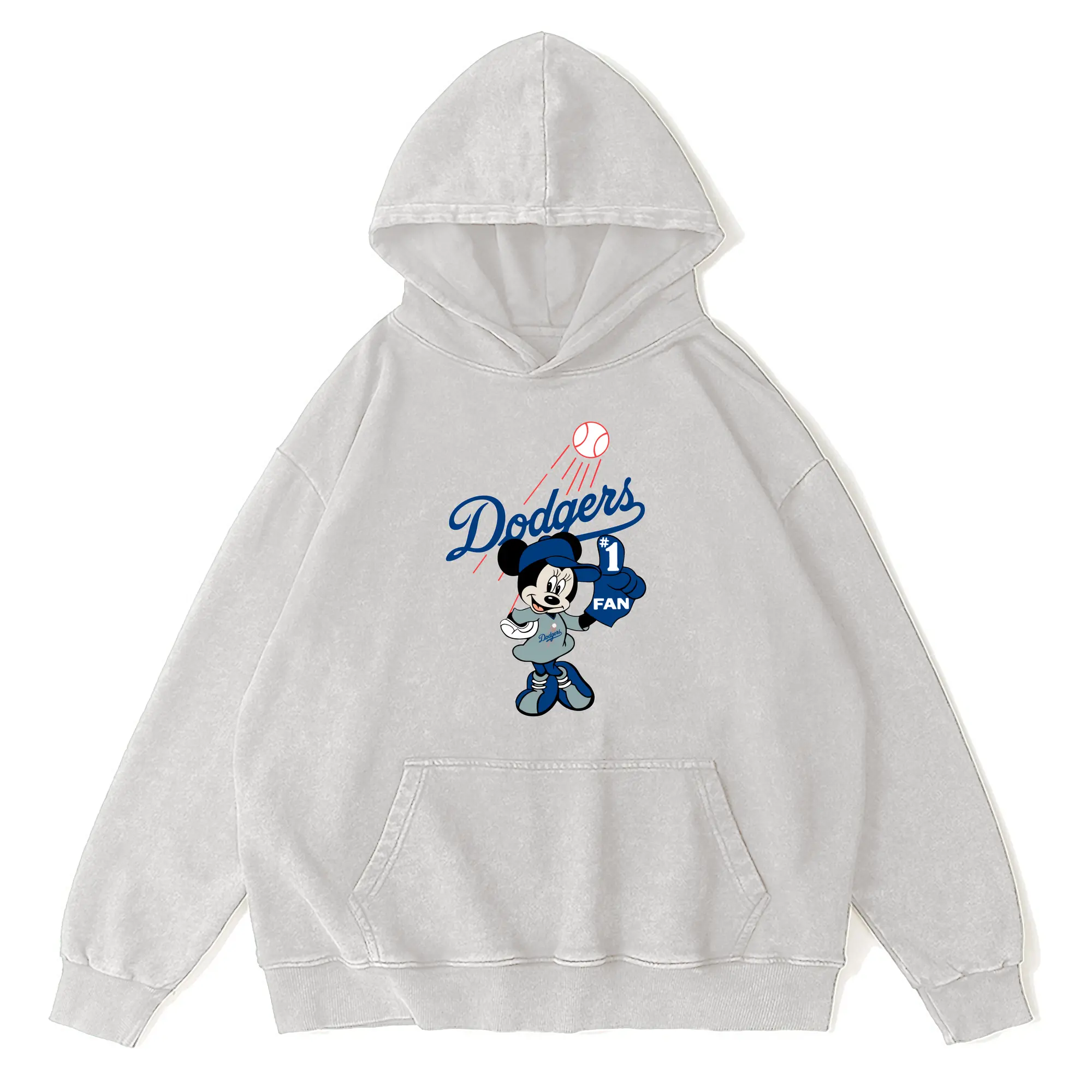 Minnie Mouse Los Angeles Dodgers Baseball - Vintage Washed Wax-Dyed Hoodie – 80% Cotton, 20% Polyester – Soft, Durable & Stylish – Perfect For Sports, Casual & Everyday Wear