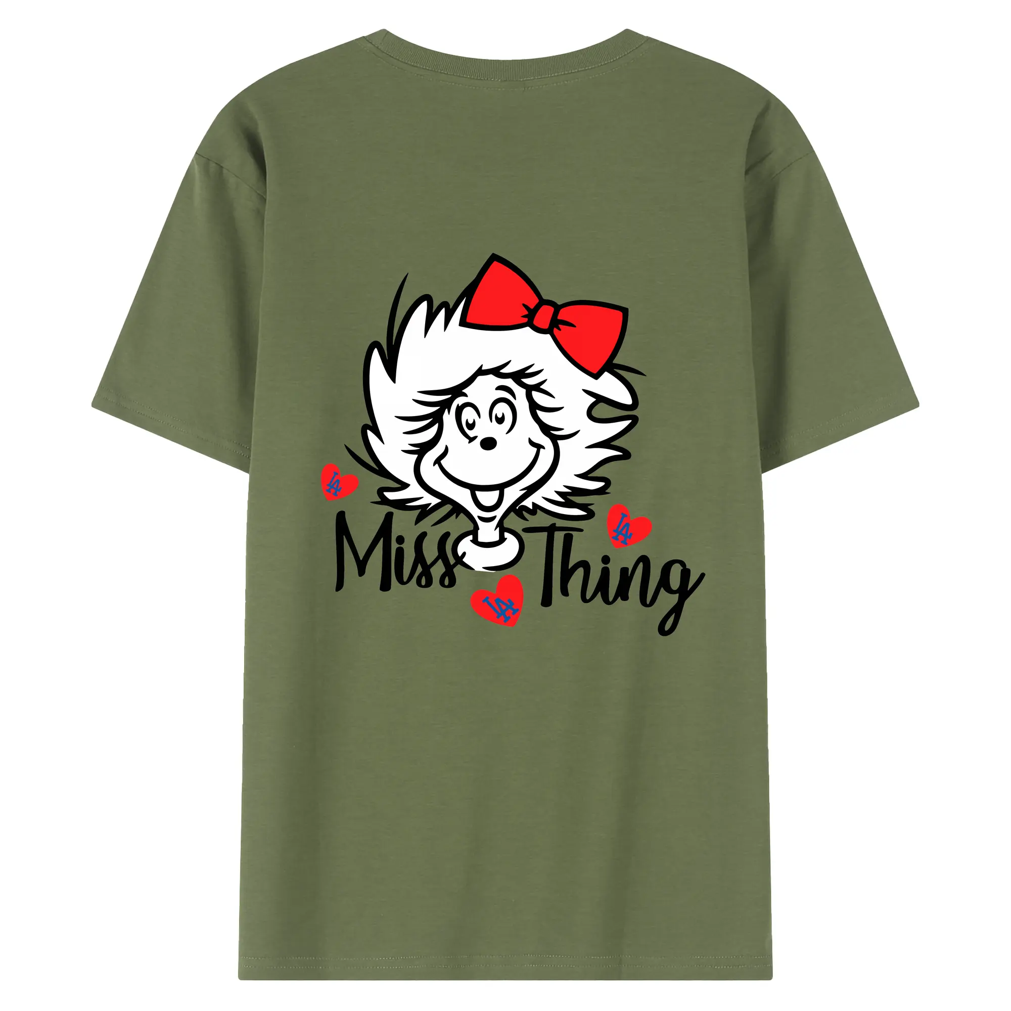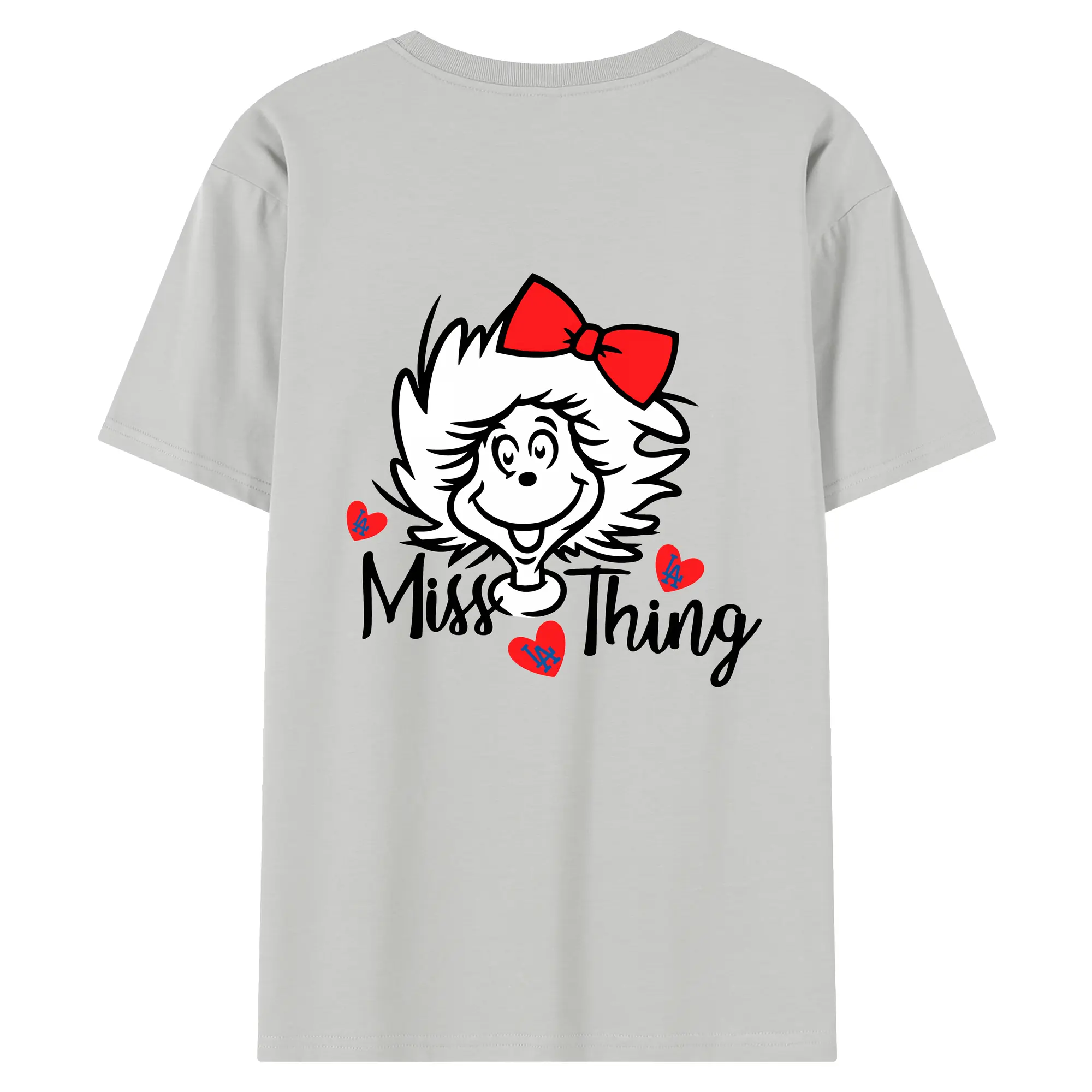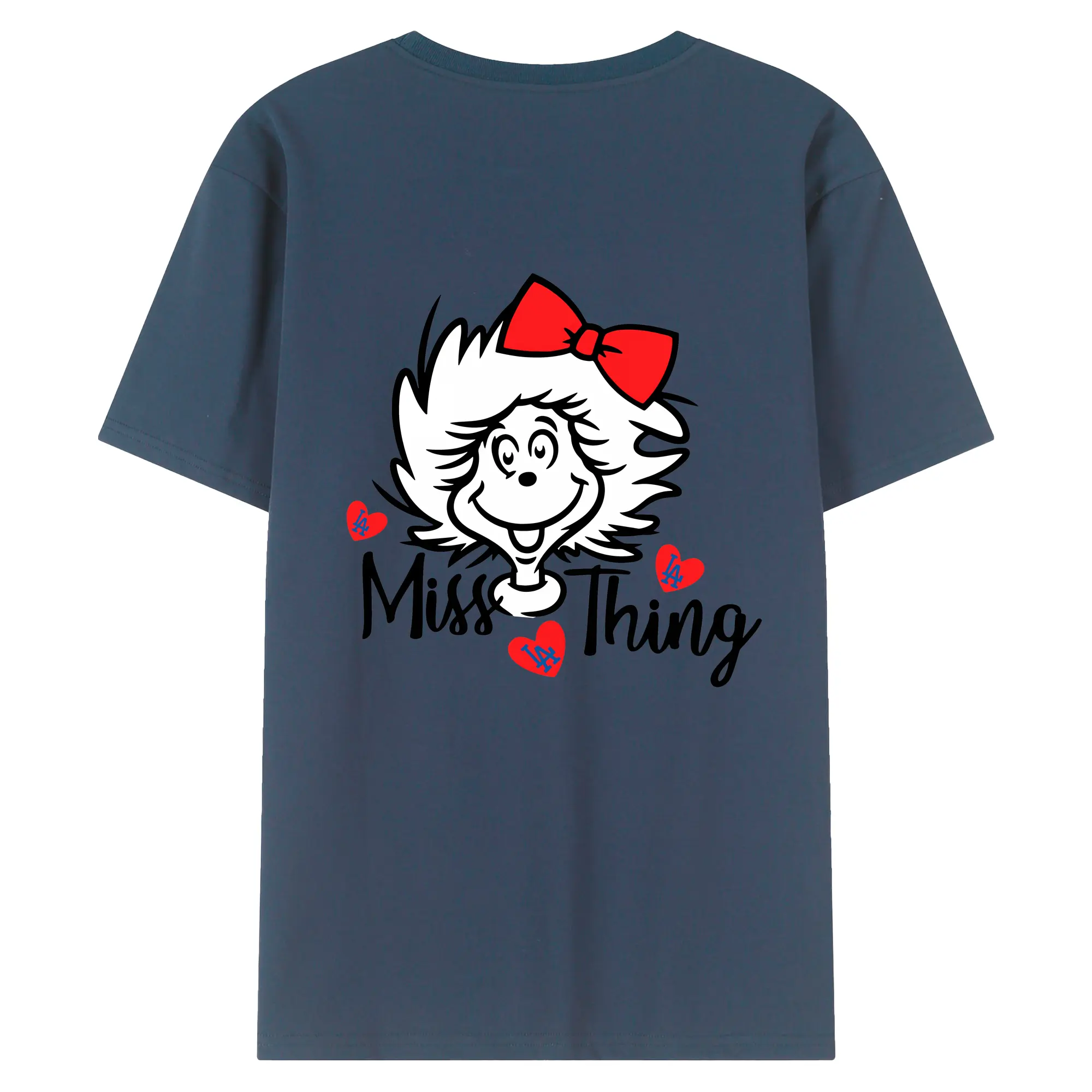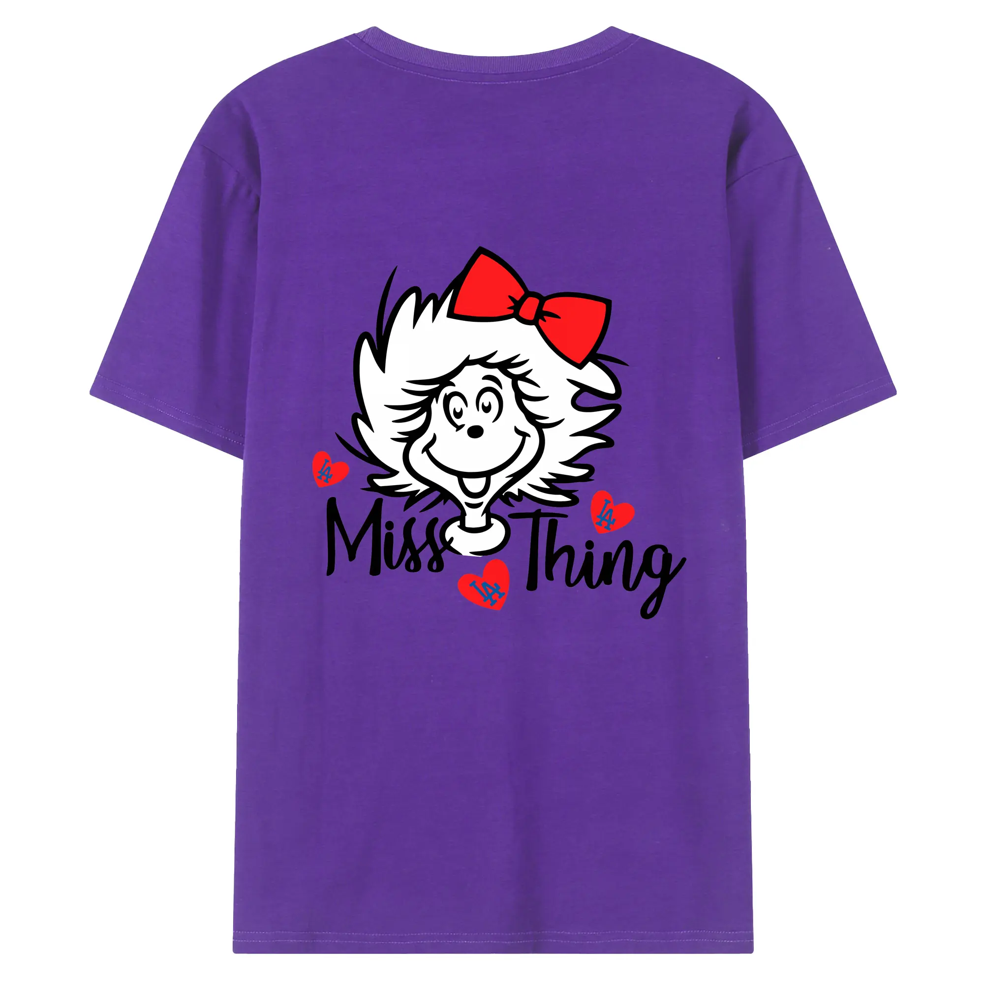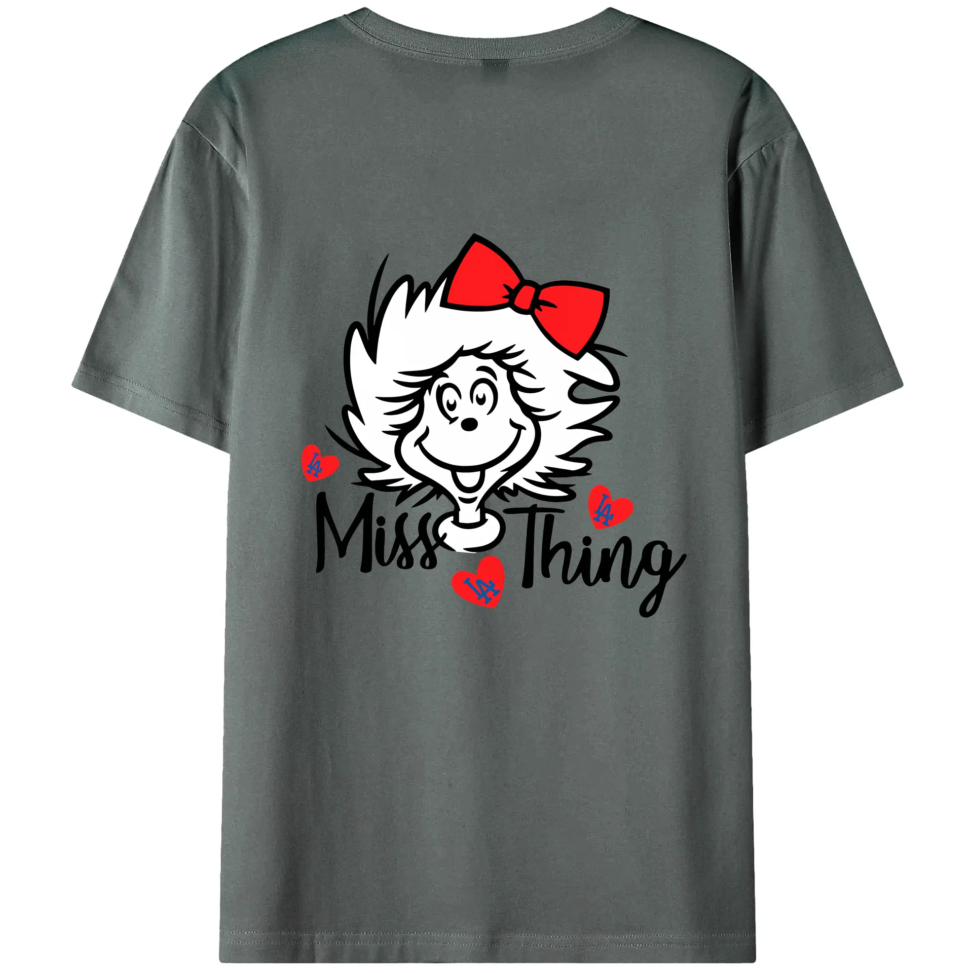 Miss Thing Dr Seuss Hearts Los Angeles Dodgers - 180g Combed Cotton T-Shirt With Back Heat Transfer Print – Soft, Lightweight, Fitted Design – Stylish Casual Wear For Sports & Everyday Use