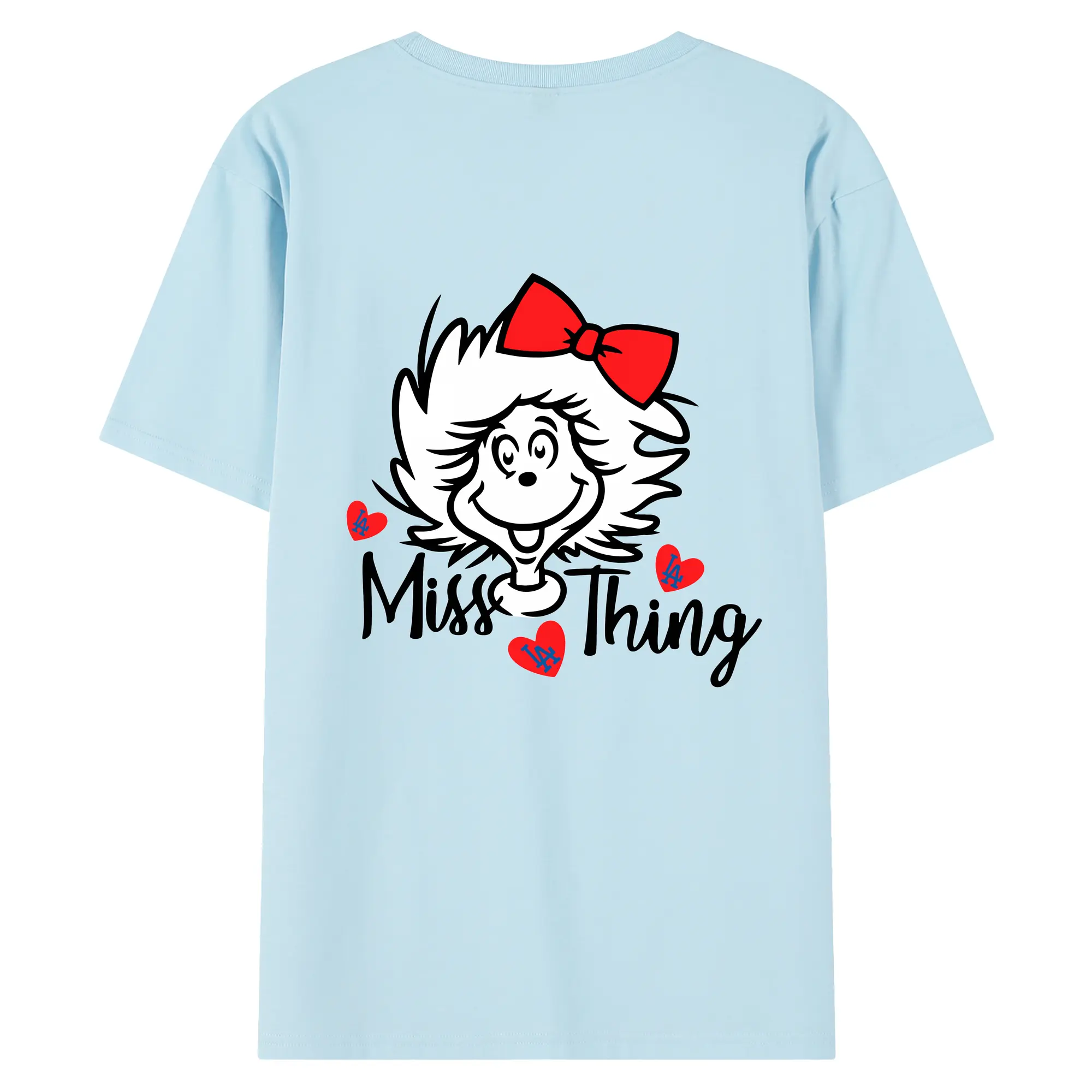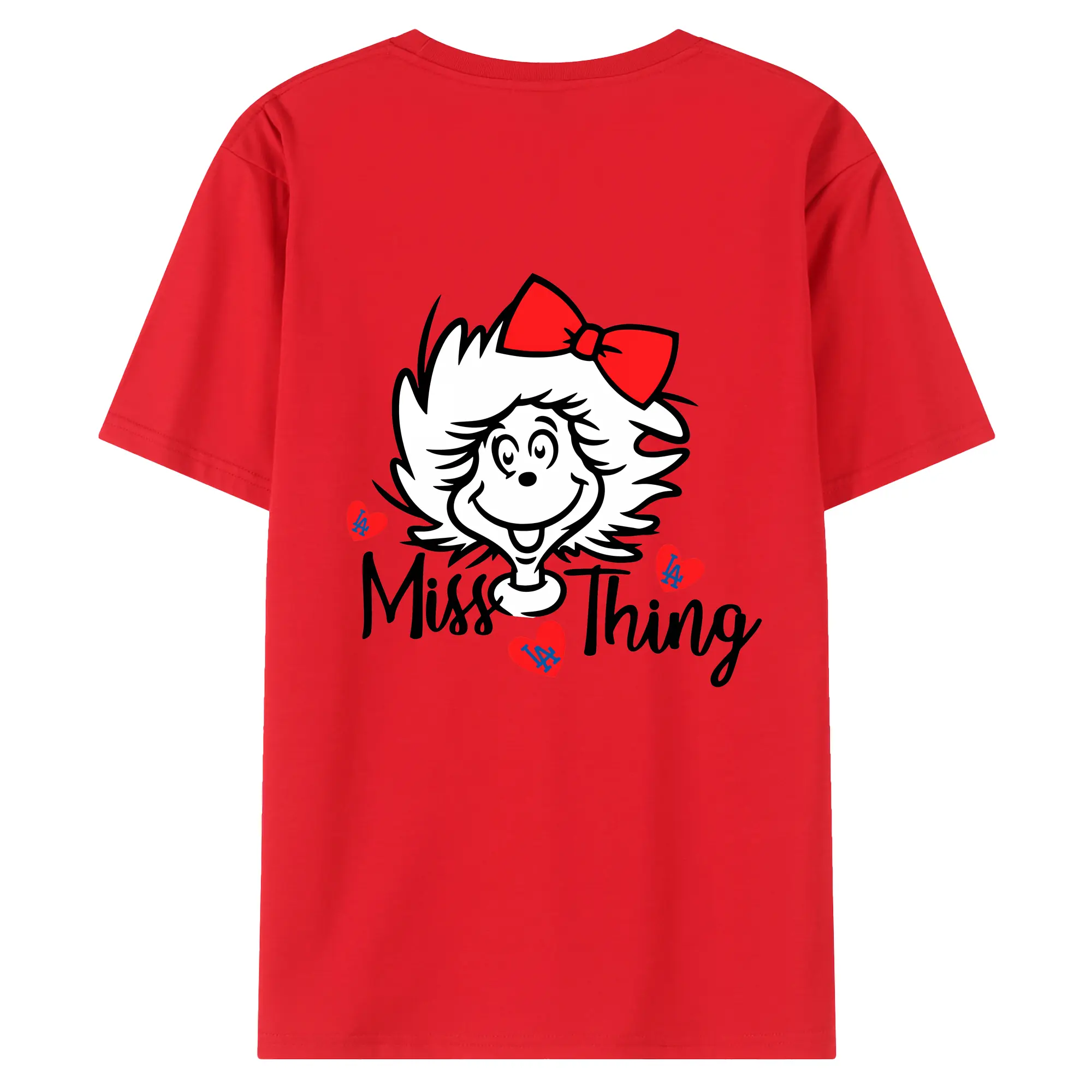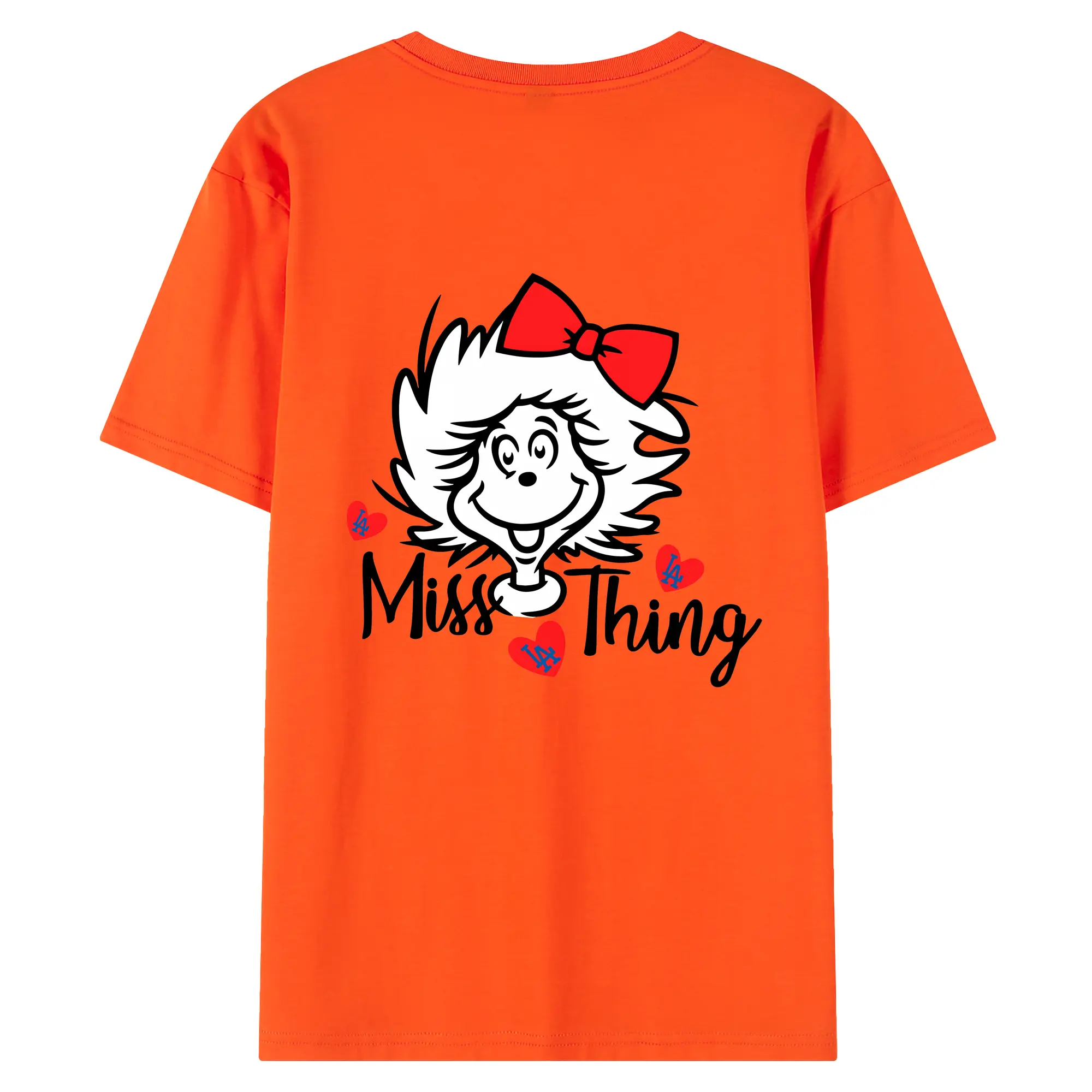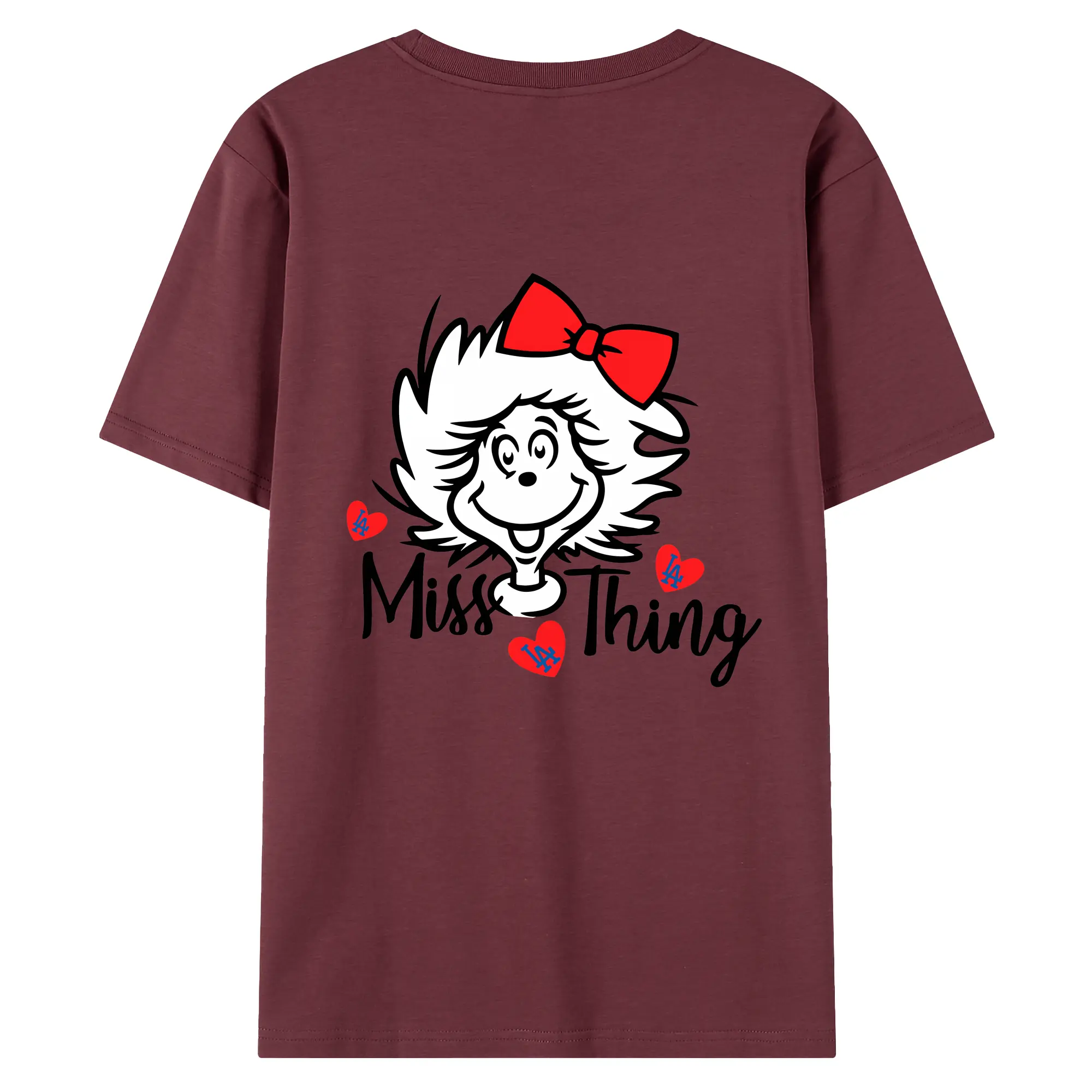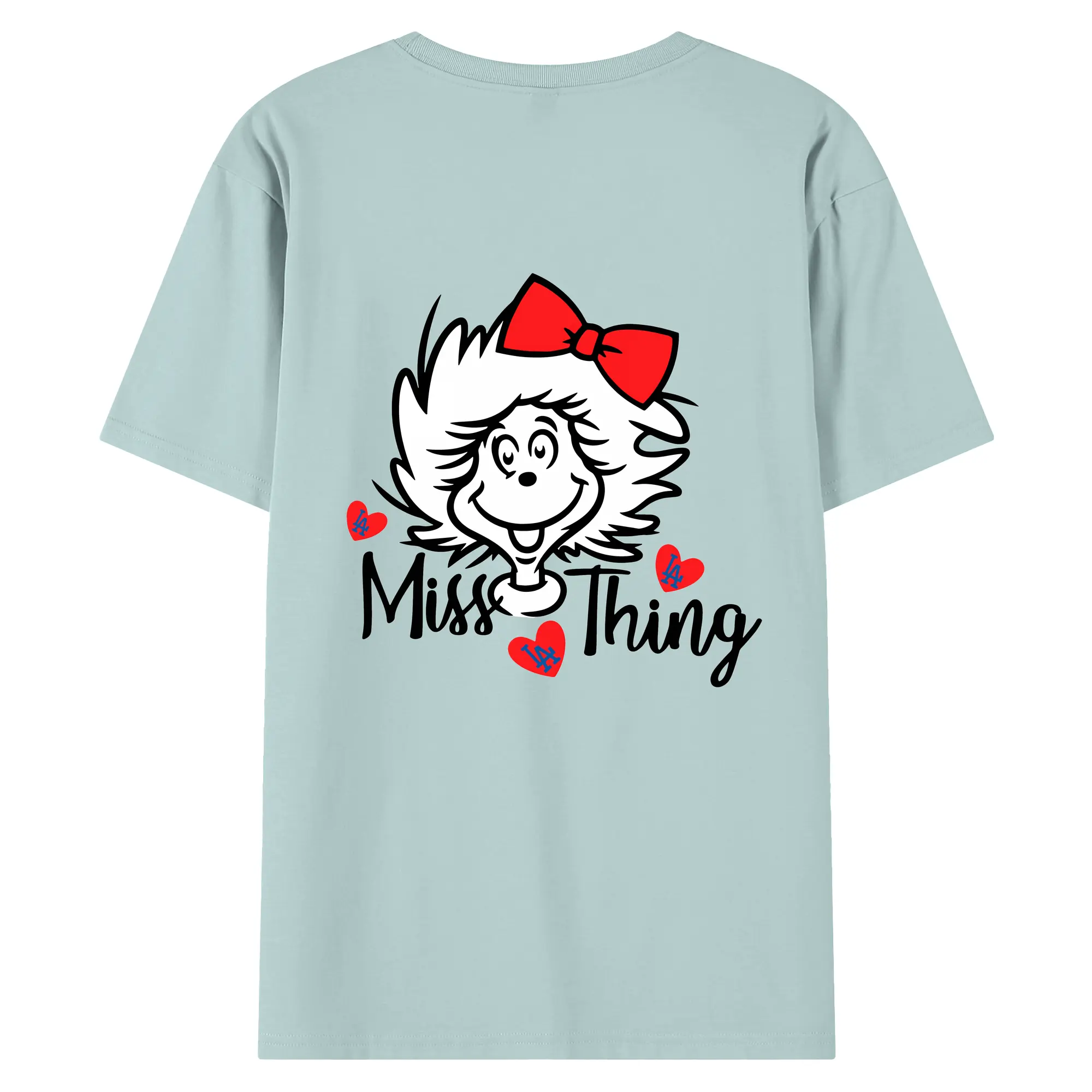 Miss Thing Dr Seuss Hearts Los Angeles Dodgers - 180g Combed Cotton T-Shirt With Back Heat Transfer Print – Soft, Lightweight, Fitted Design – Stylish Casual Wear For Sports & Everyday Use