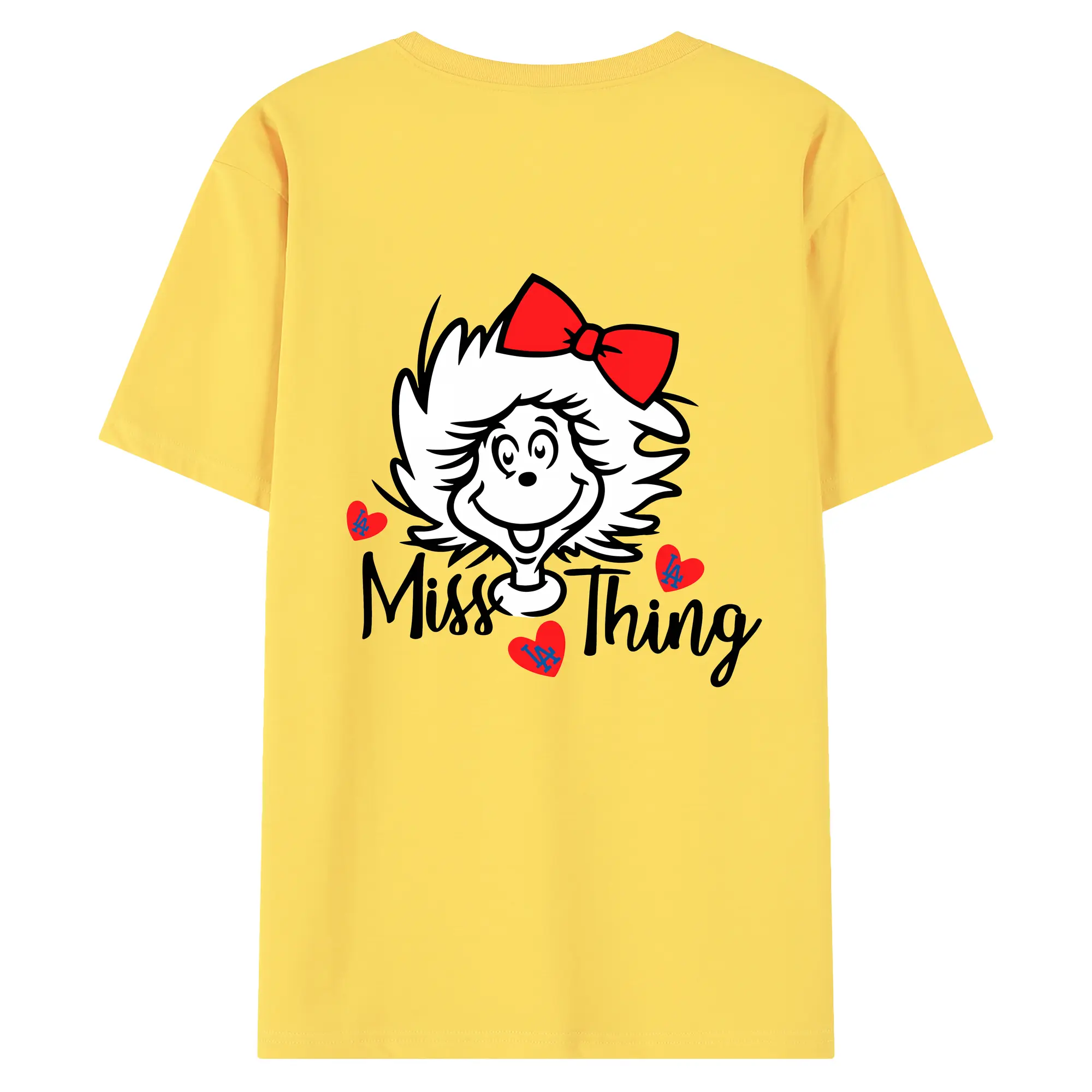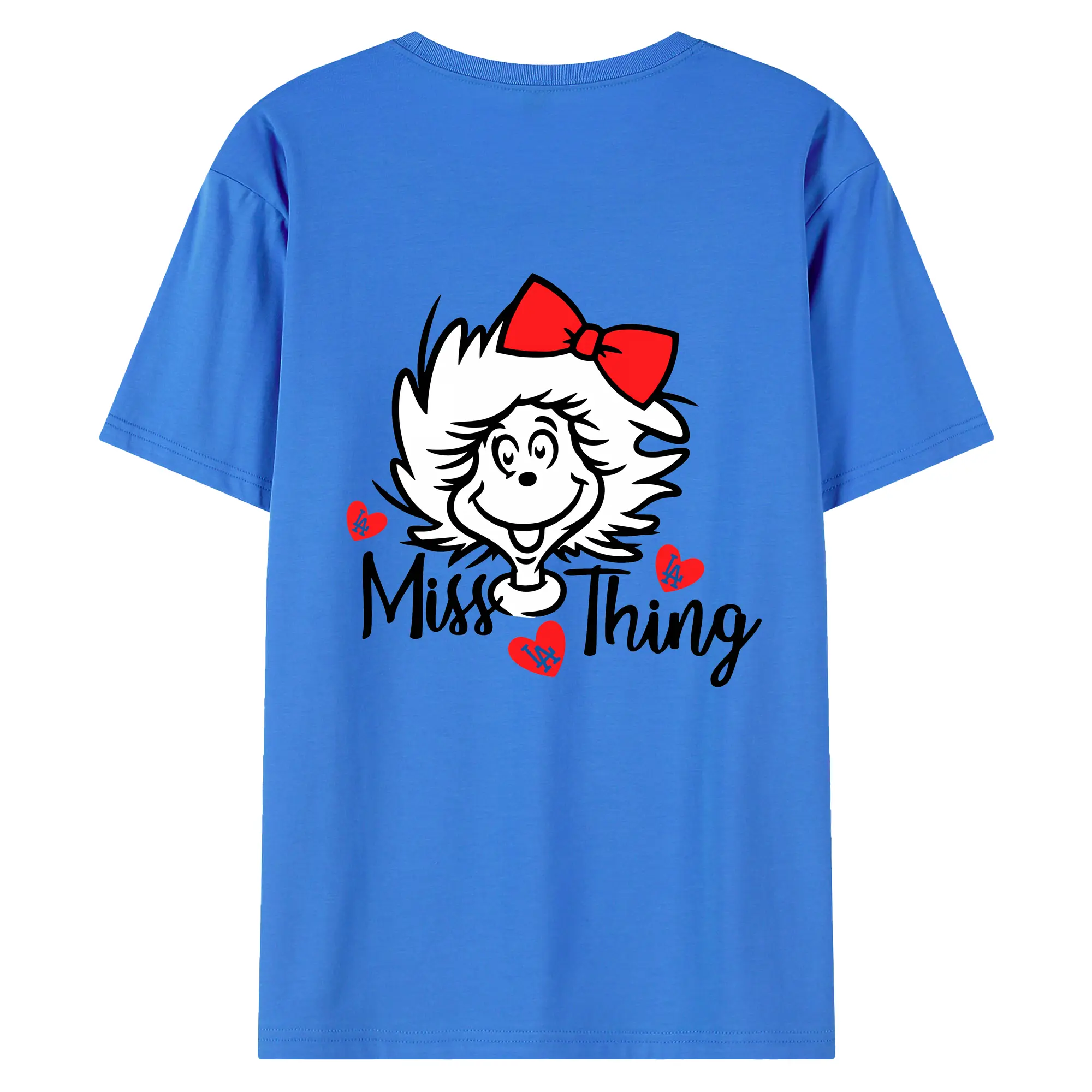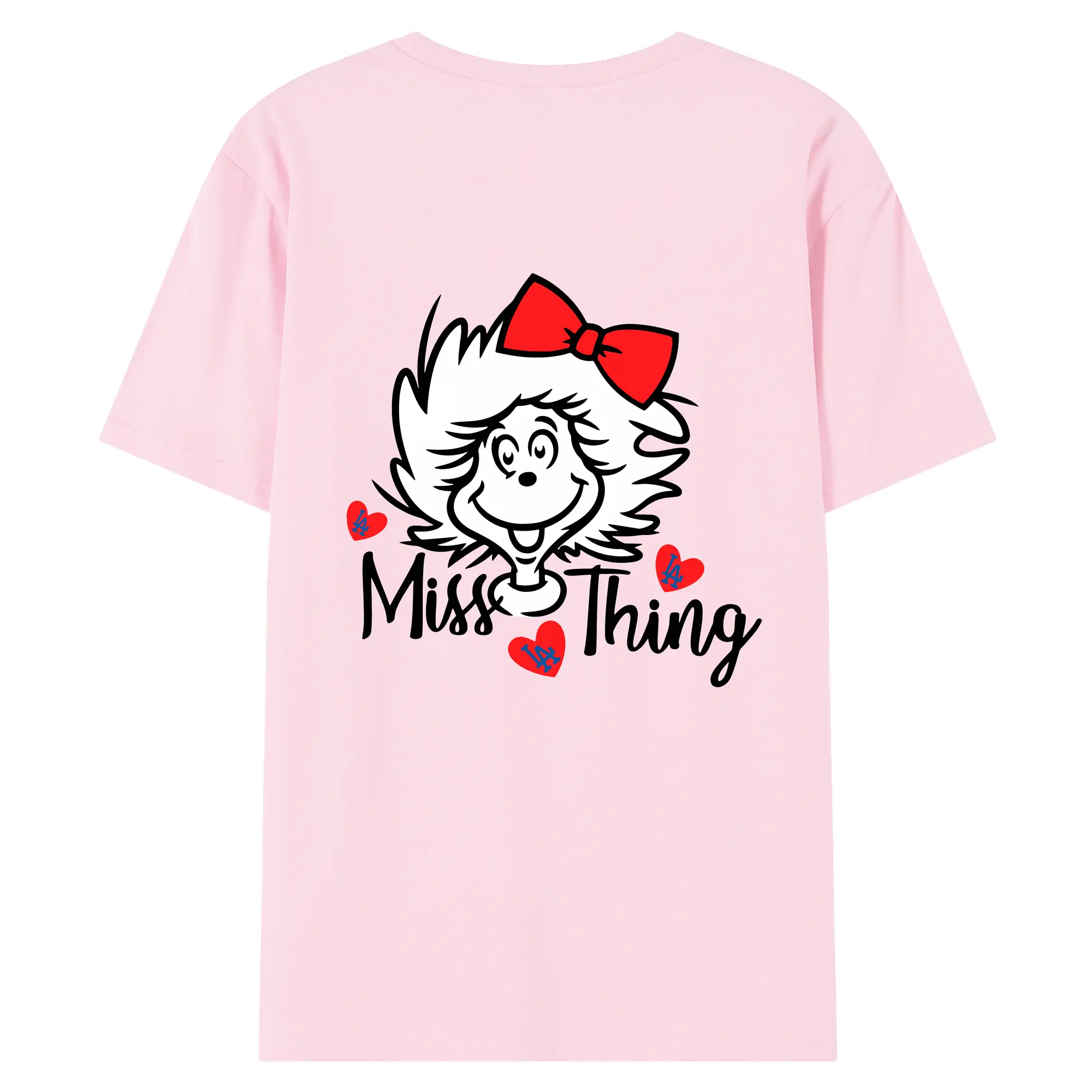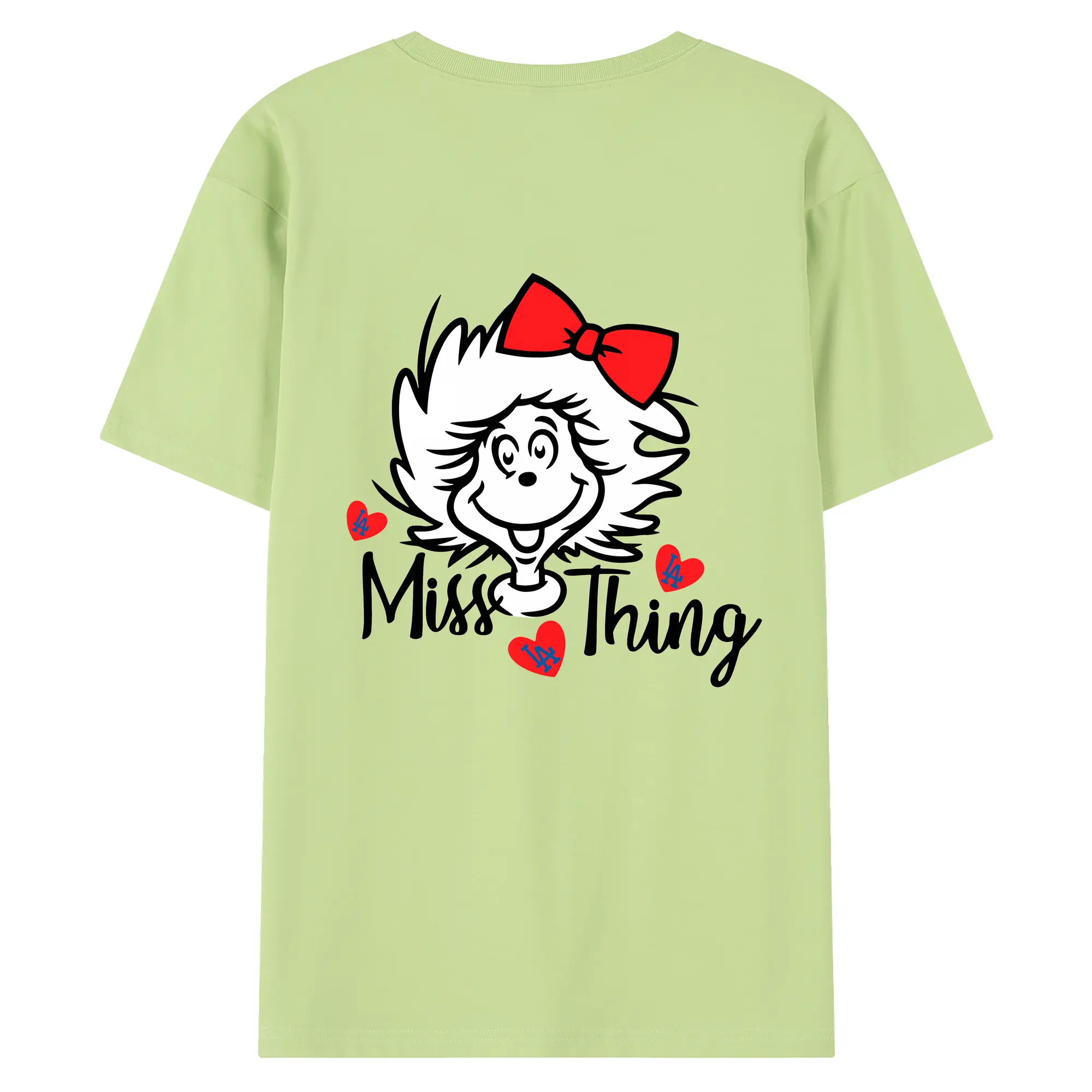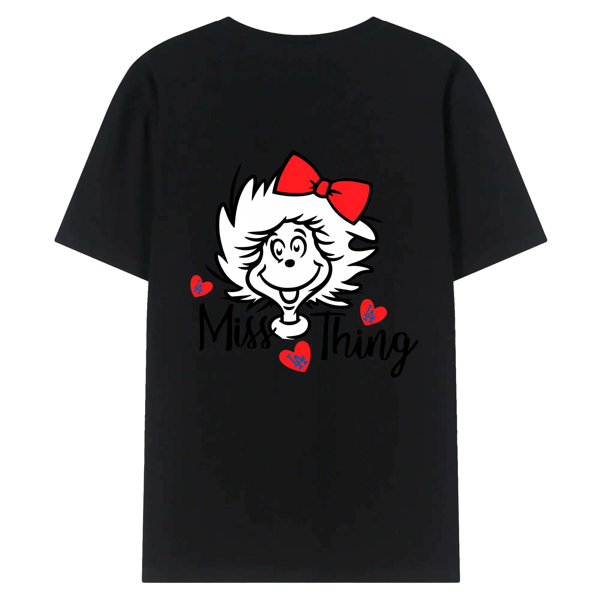 Miss Thing Dr Seuss Hearts Los Angeles Dodgers - 180g Combed Cotton T-Shirt With Back Heat Transfer Print – Soft, Lightweight, Fitted Design – Stylish Casual Wear For Sports & Everyday Use