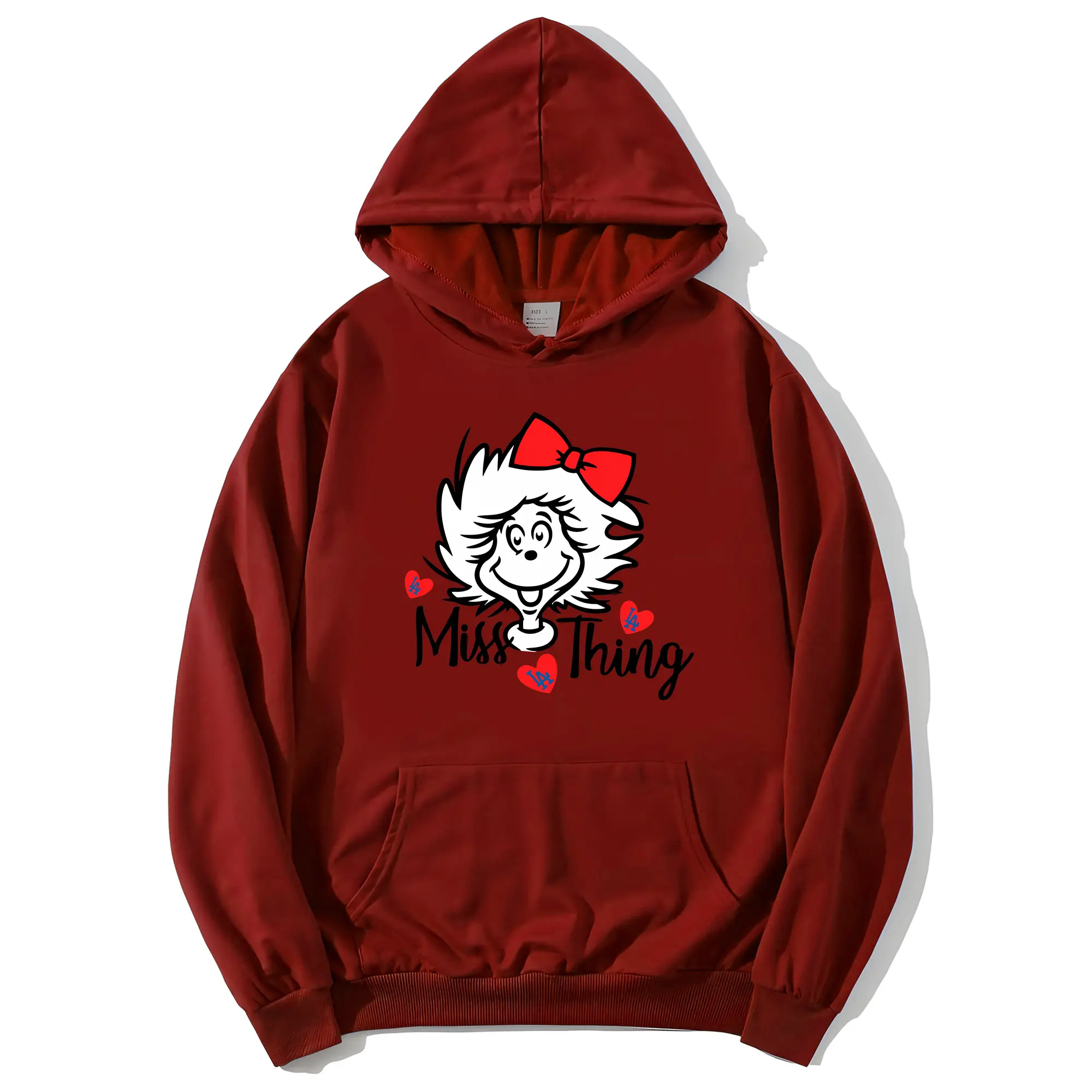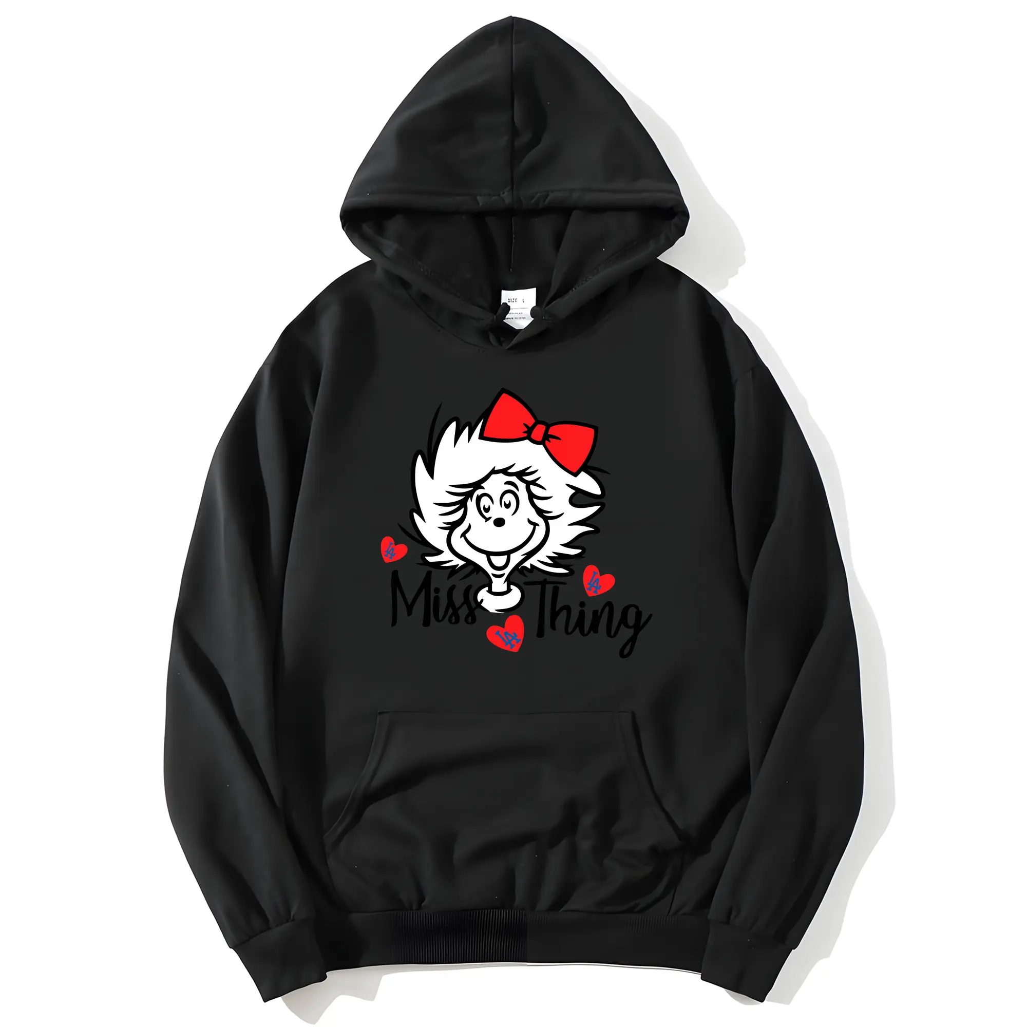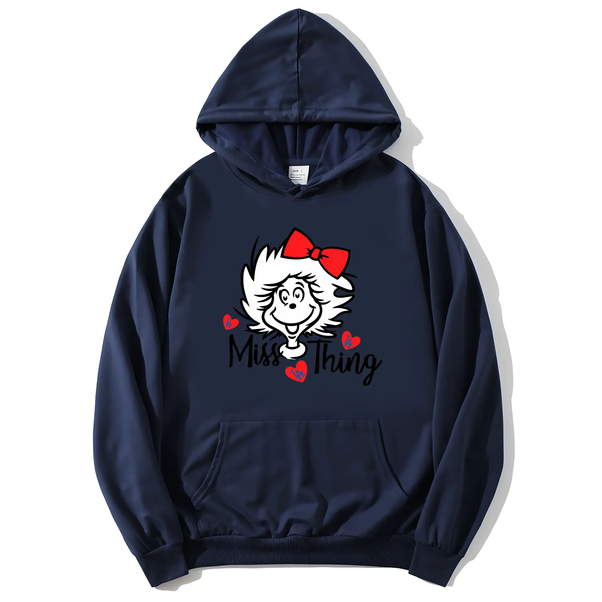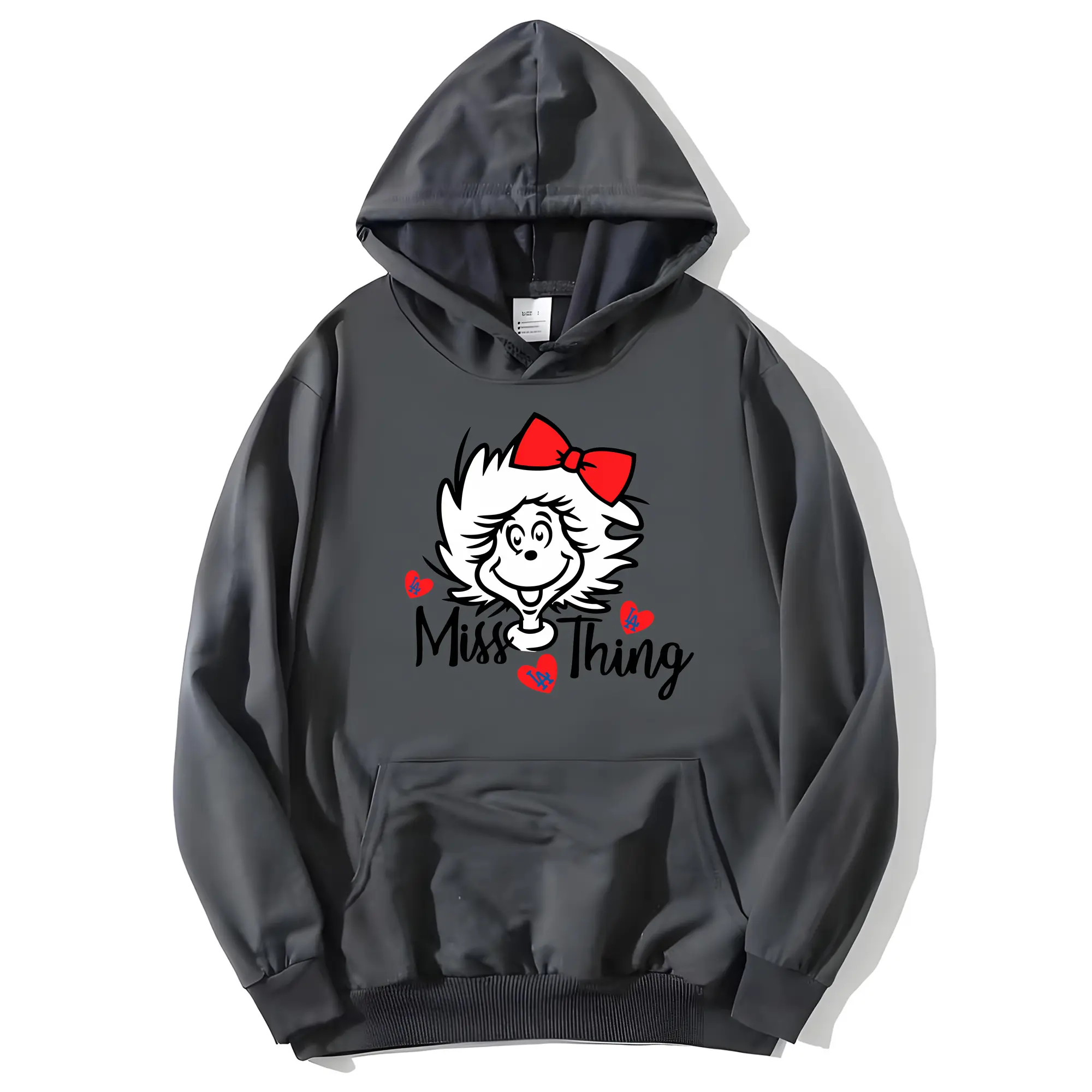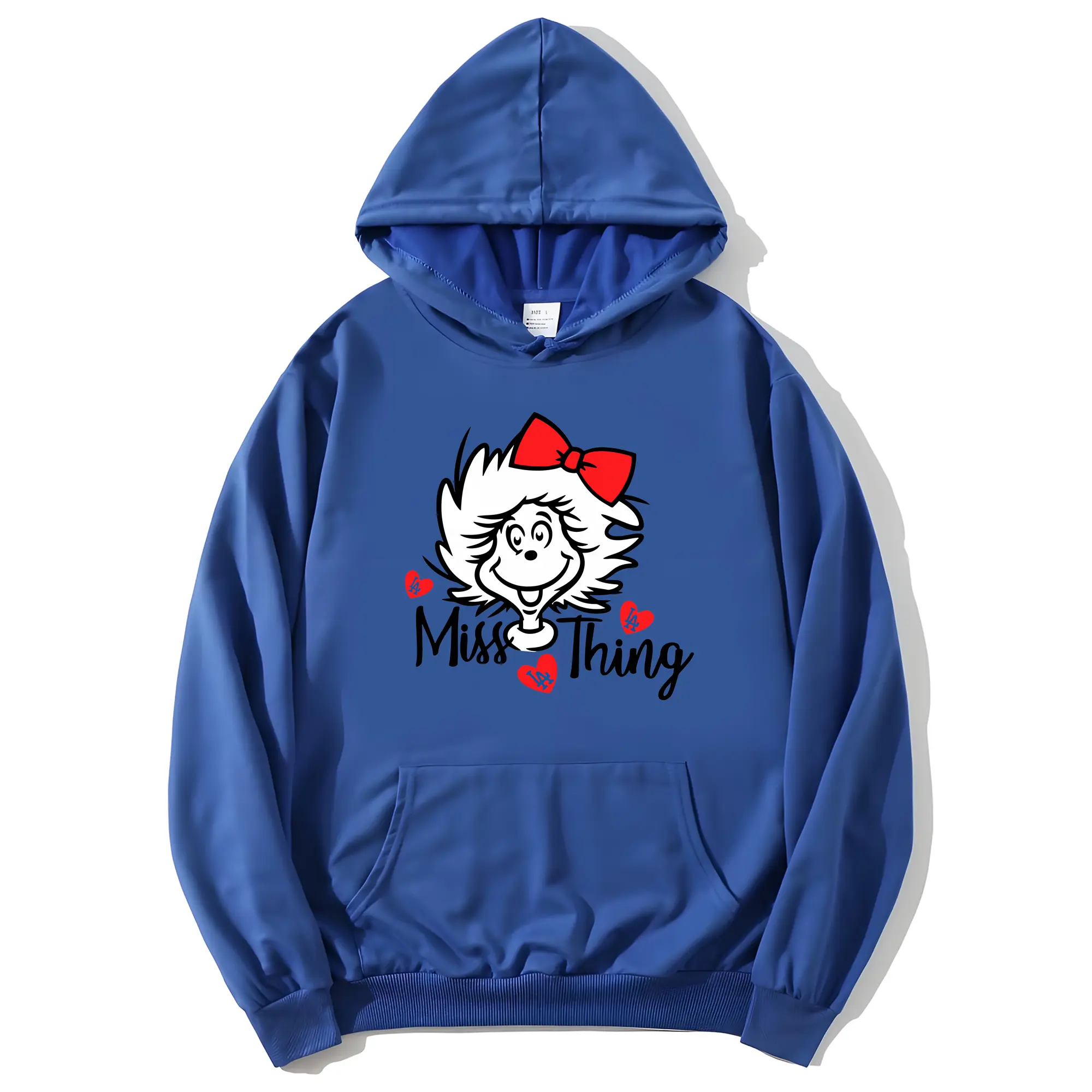 Miss Thing Dr Seuss Hearts Los Angeles Dodgers - Premium Hoodie With Front Heat Transfer Print – 56.1% Cotton, 43.9% Polyester – Soft, Durable & Stylish – Perfect For Sports, Casual & Everyday Wear