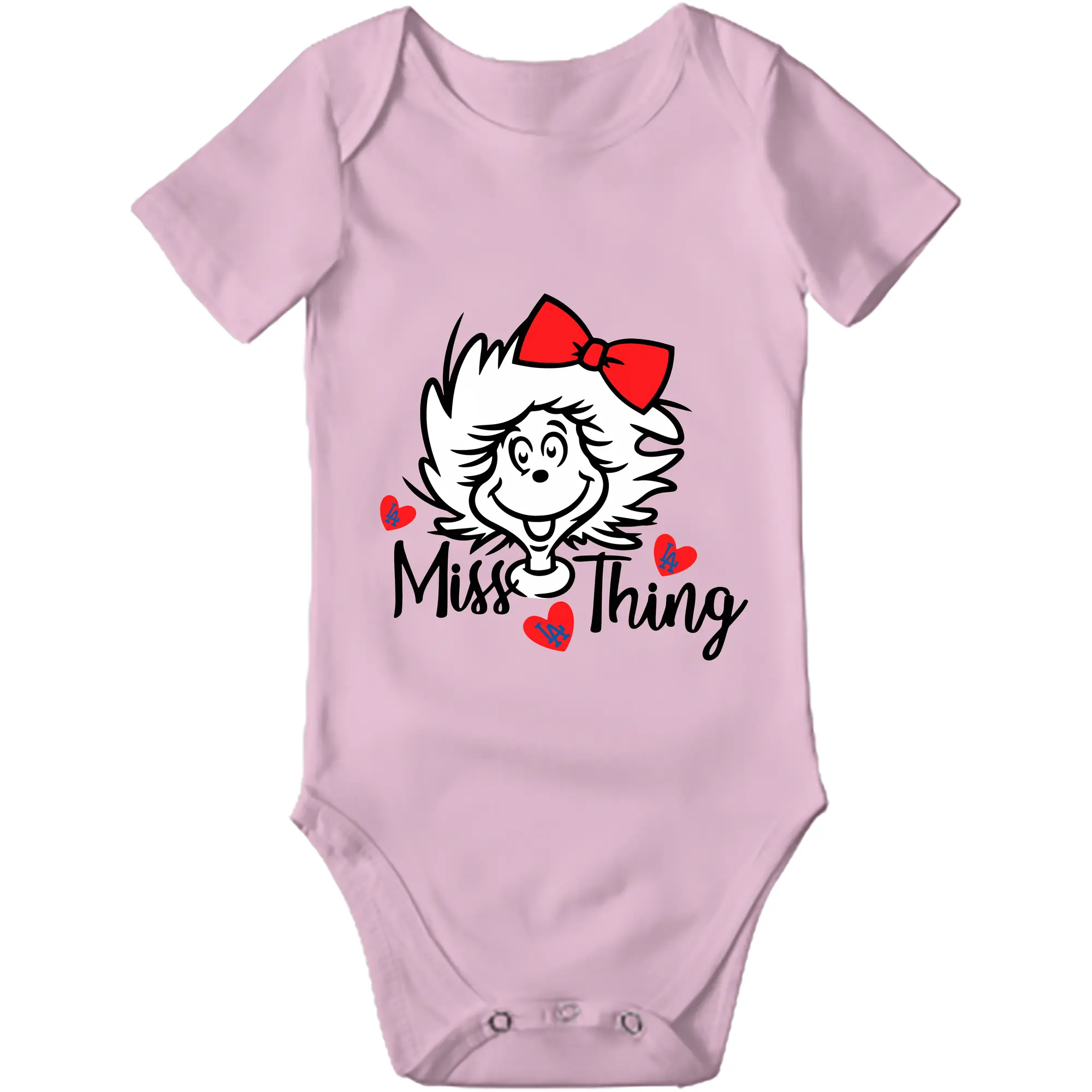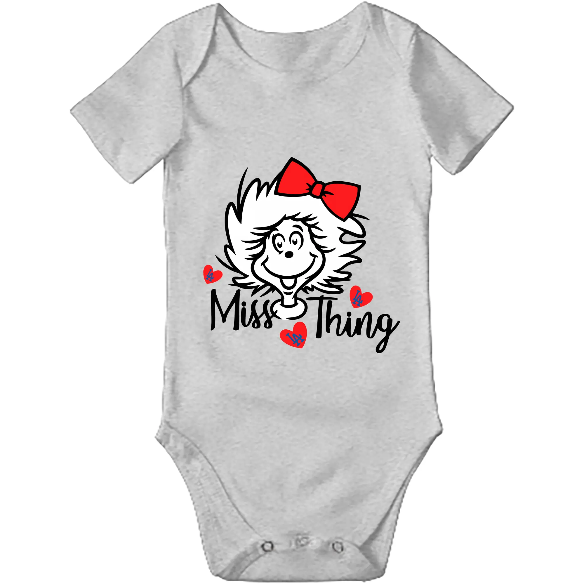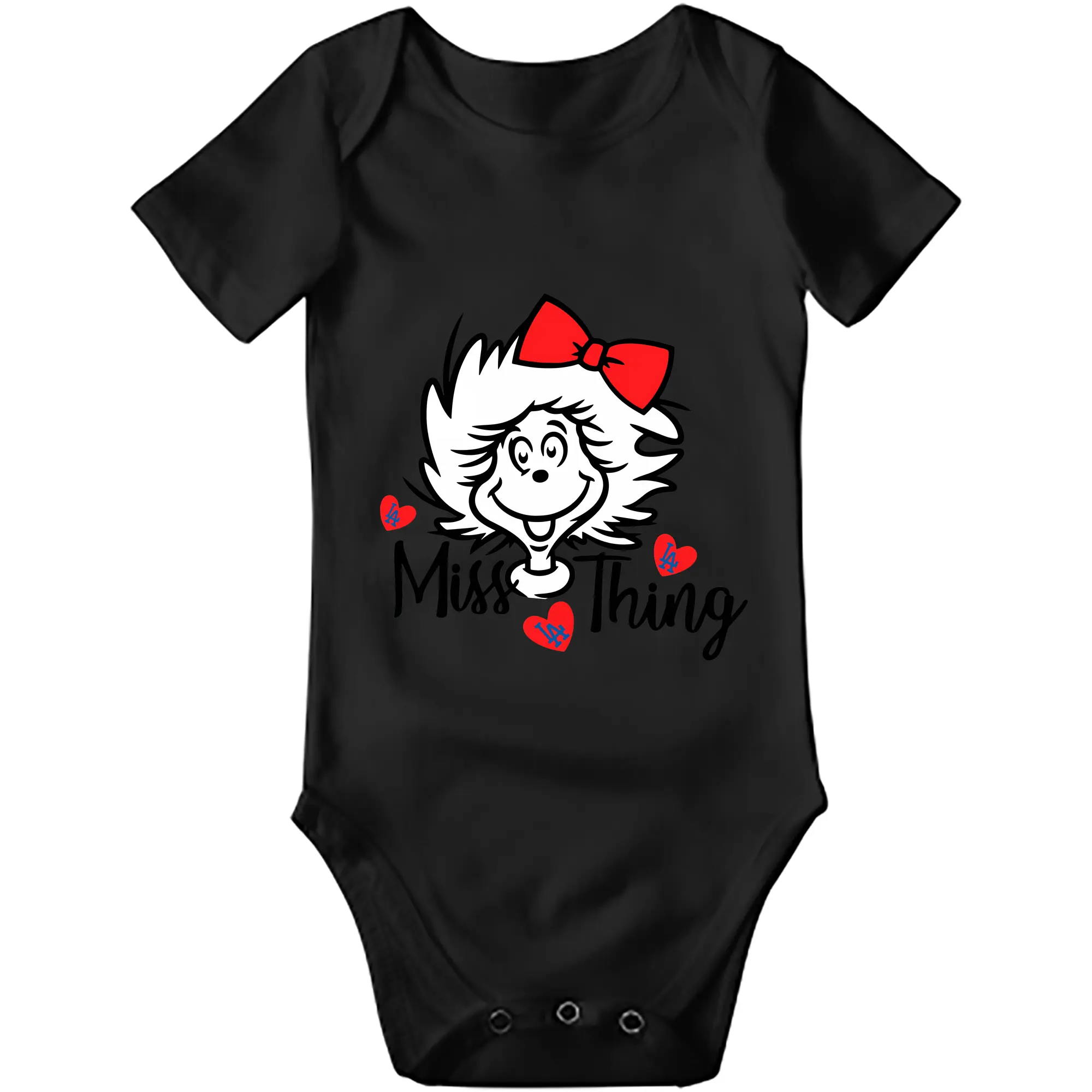Miss Thing Dr Seuss Hearts Los Angeles Dodgers - Baby Short Sleeve Romper – 100% Cotton Soft & Breathable Digital Print Onesie With Easy Snap Closure And Envelope Shoulder – Comfortable For Daily Wear & Travel