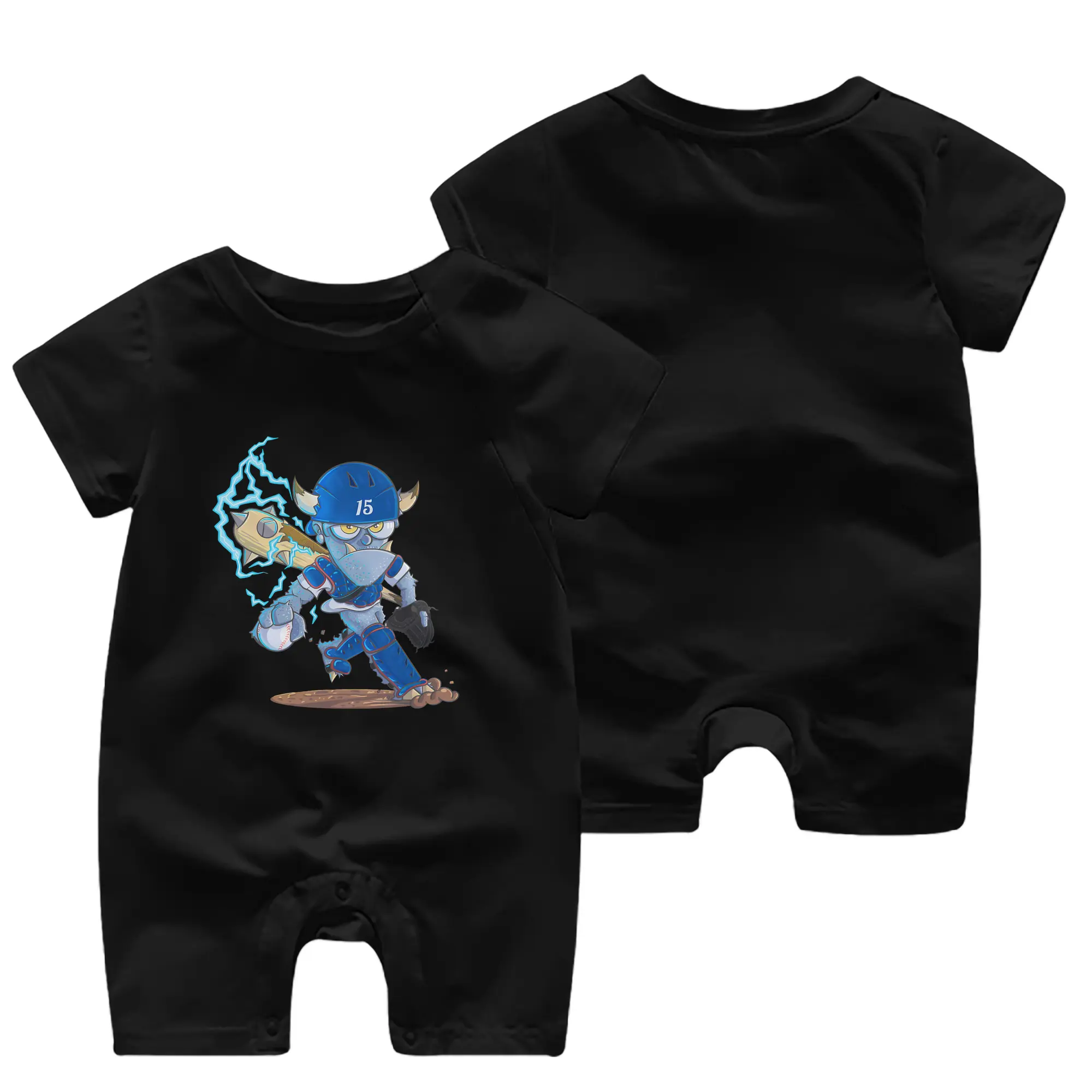 Monster Barnesy Los Angeles Dodgers - Baby Short Sleeve Onesie – 100% Cotton Soft & Breathable Digital Print Romper – Double-Sided Print, Snap Closure For Easy Diaper Changes – Comfortable For Boys & Girls