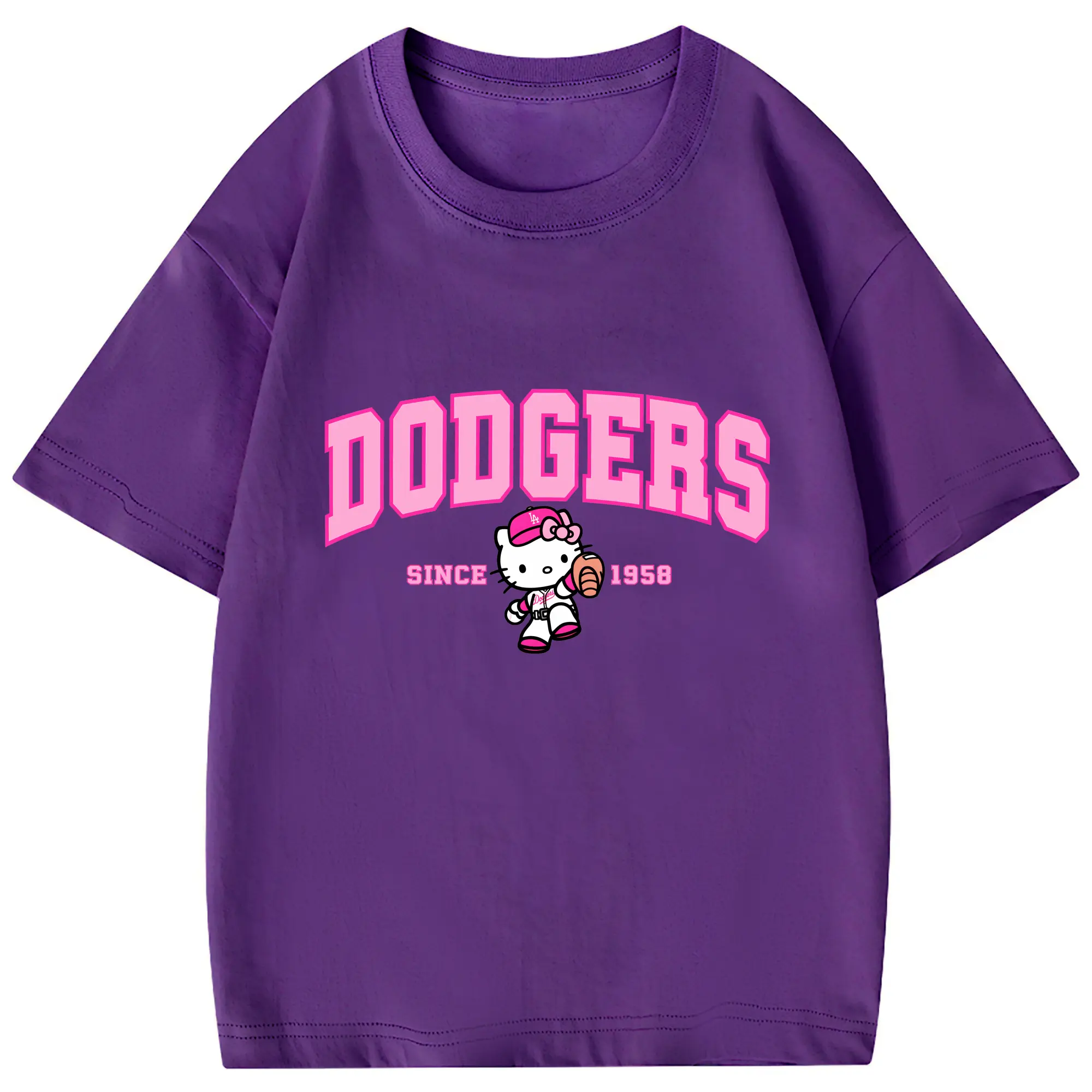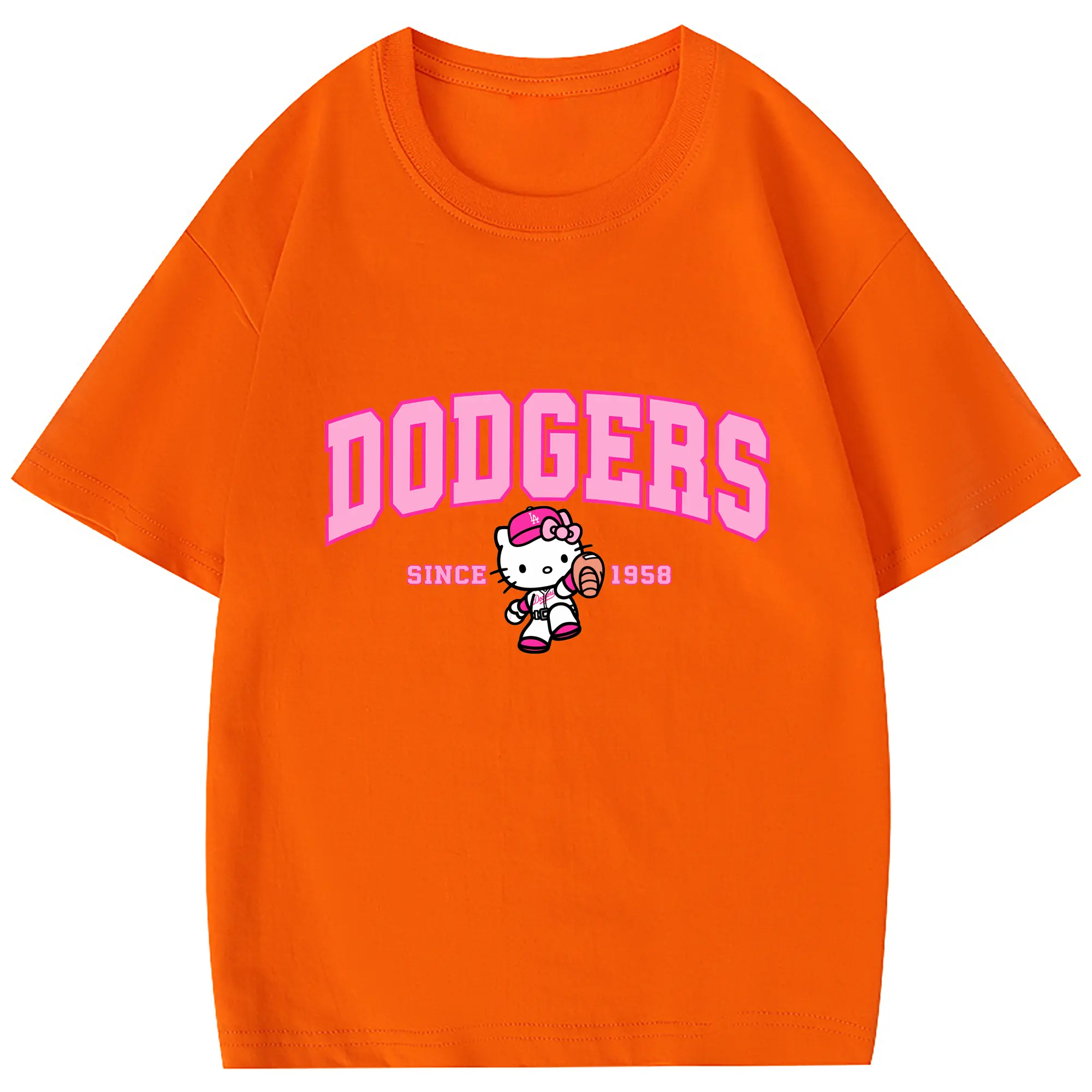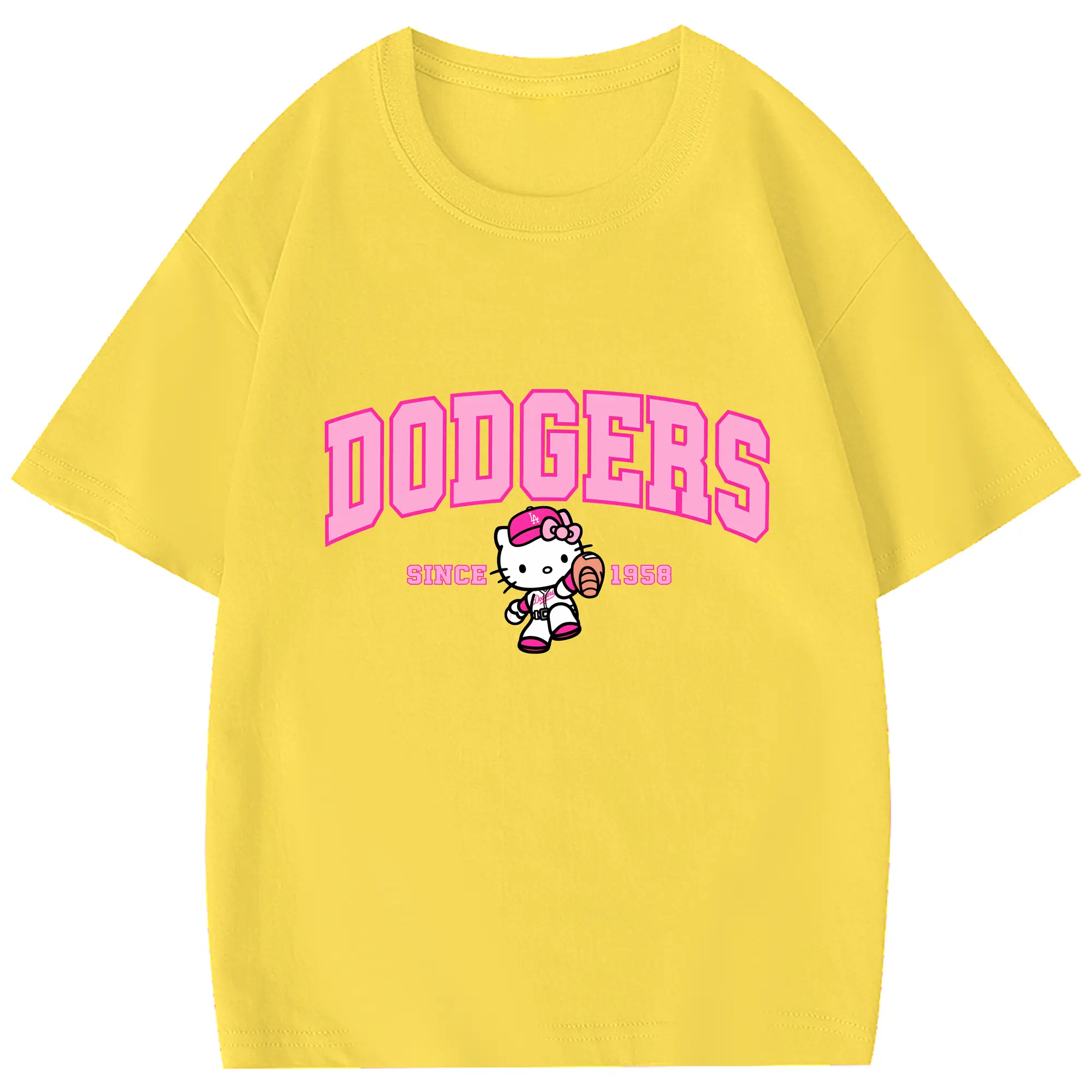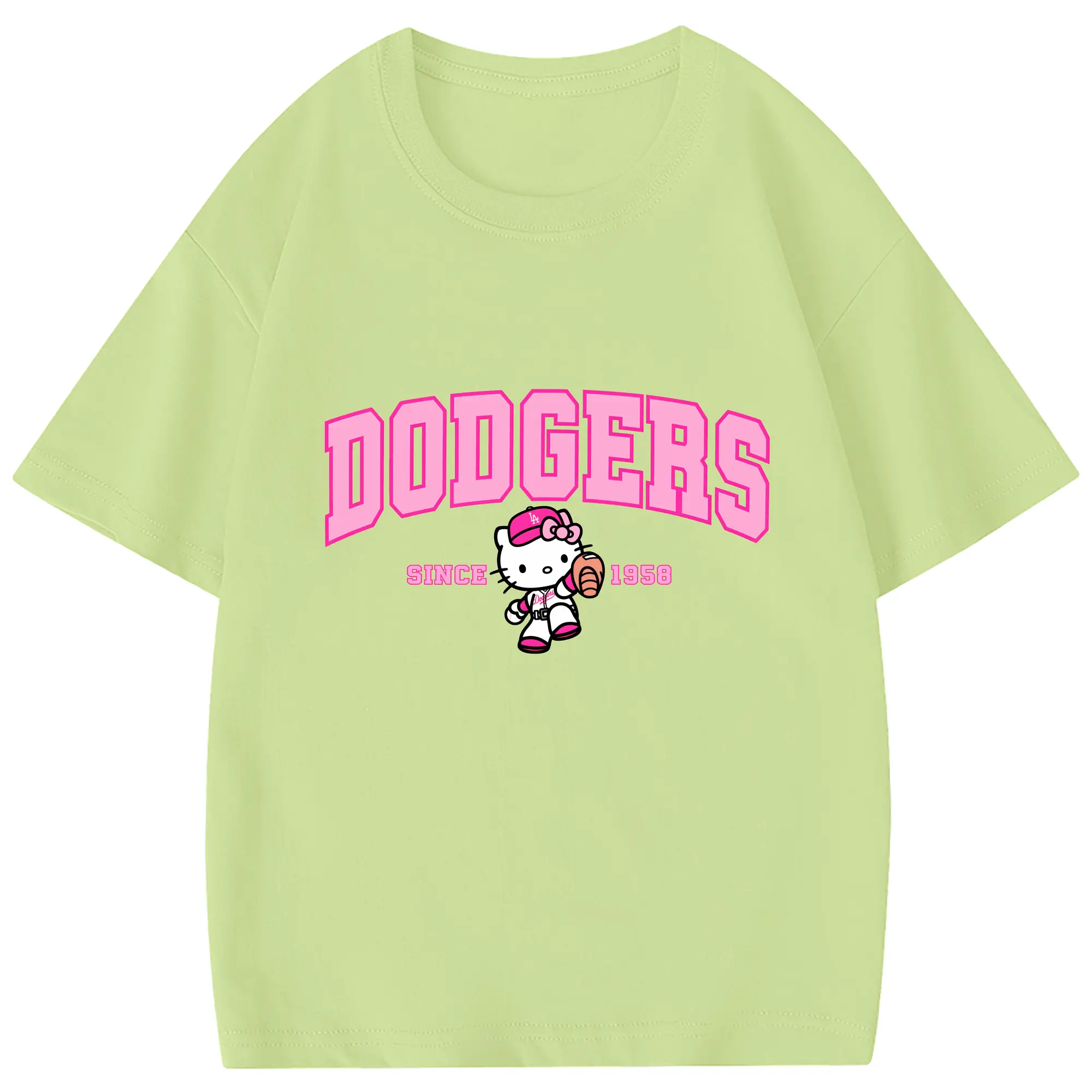 Pink Baseball Hello Kitty Dodgers - Combed Cotton Kids T-Shirt 180g With Front Heat Transfer Print – Soft, Lightweight, Side-Seamed Design – Stylish And Comfortable Casual Wear For Everyday Activities
