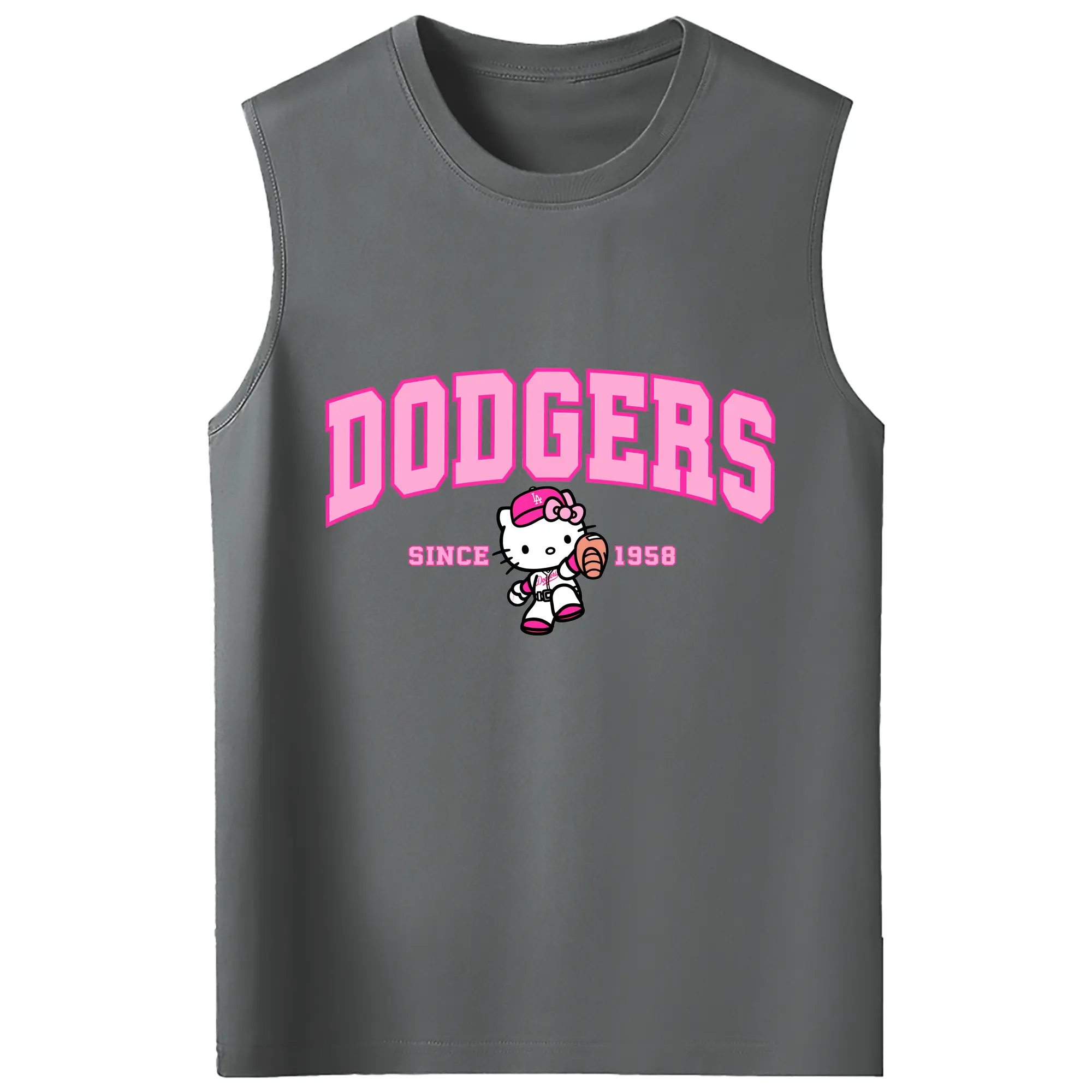 Pink Baseball Hello Kitty Dodgers - 210g Combed Cotton Tank Top With Front Heat Transfer Print – Soft, Lightweight, Fitted Design – Stylish & Comfortable Casual Wear For Sports & Everyday Use