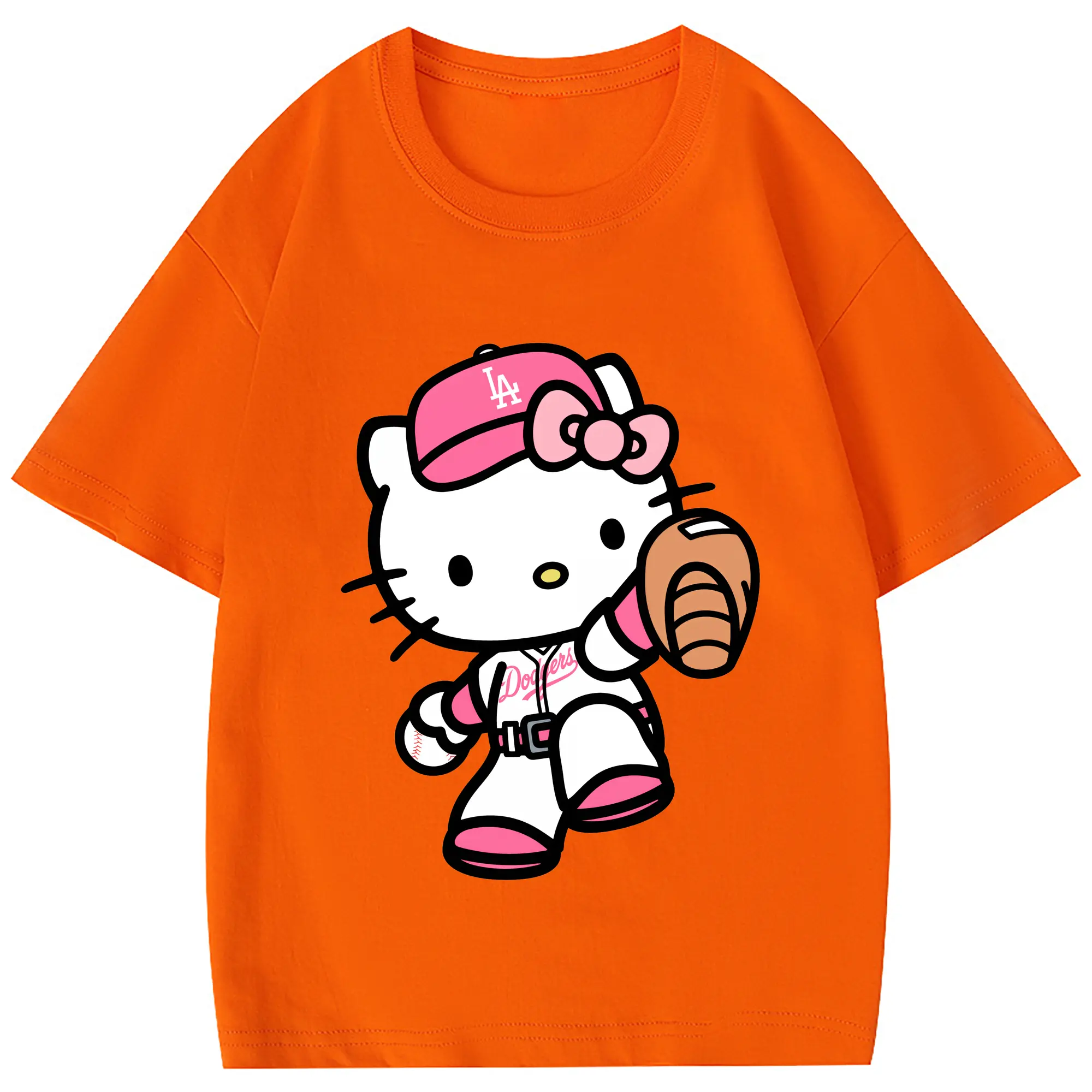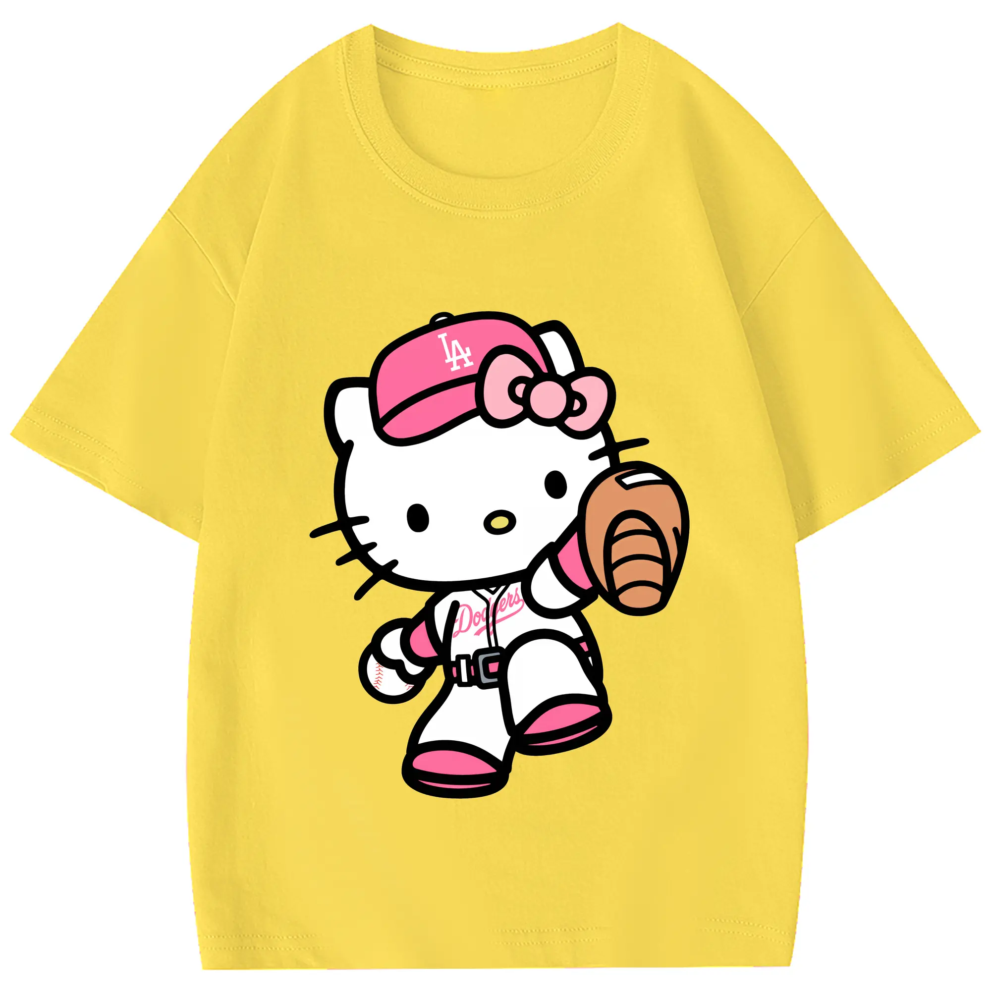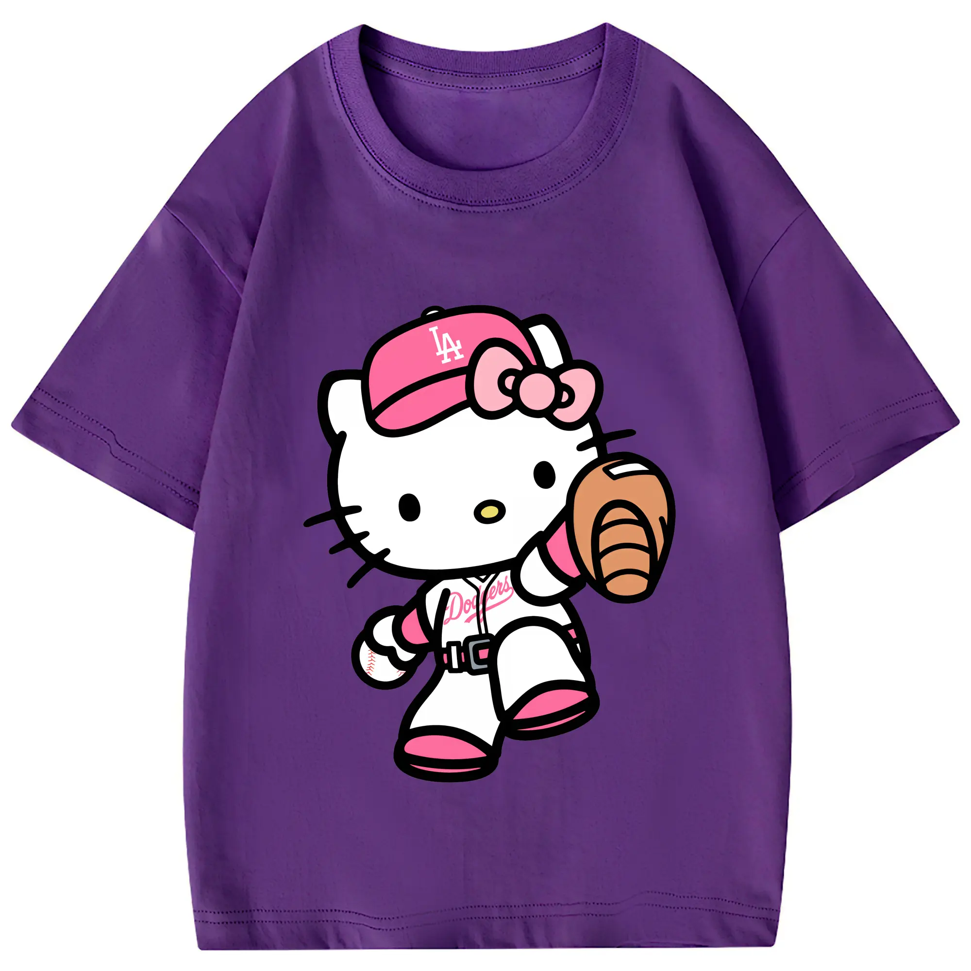 Pink Hello Kitty Play Baseball Los Angeles Dodgers - Combed Cotton Kids T-Shirt 180g With Front Heat Transfer Print – Soft, Lightweight, Side-Seamed Design – Stylish And Comfortable Casual Wear For Everyday Activities