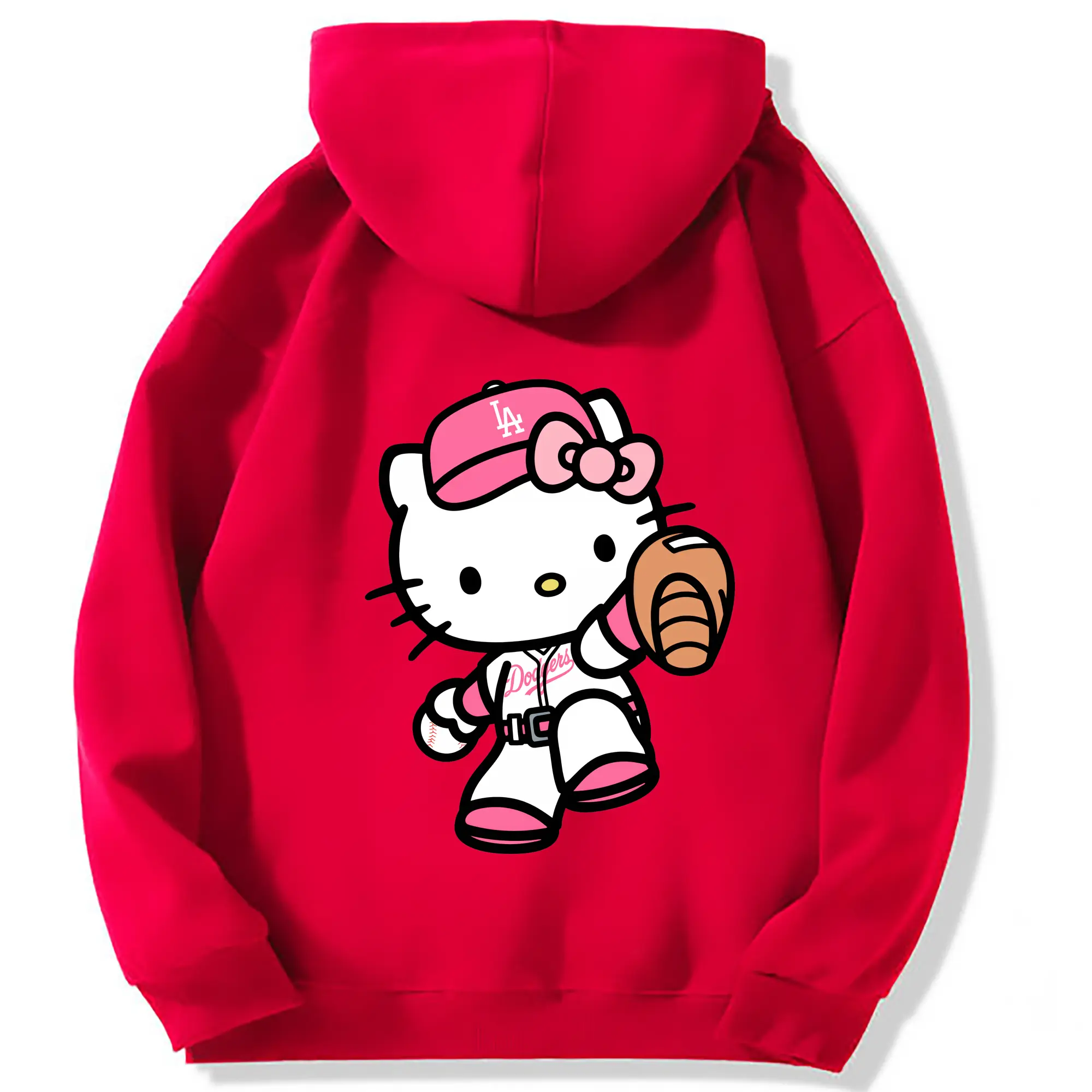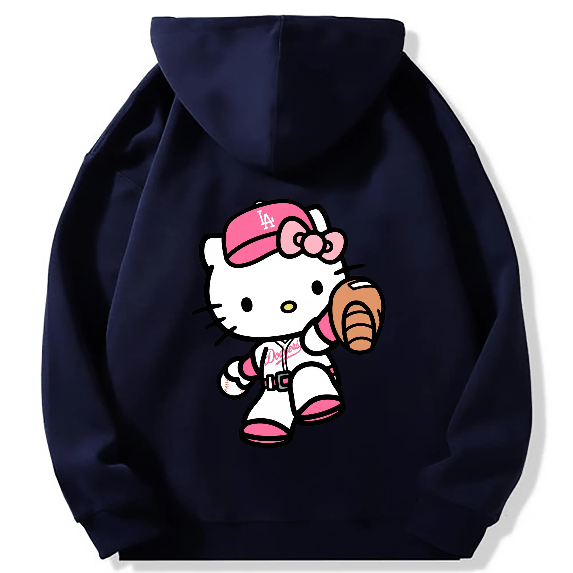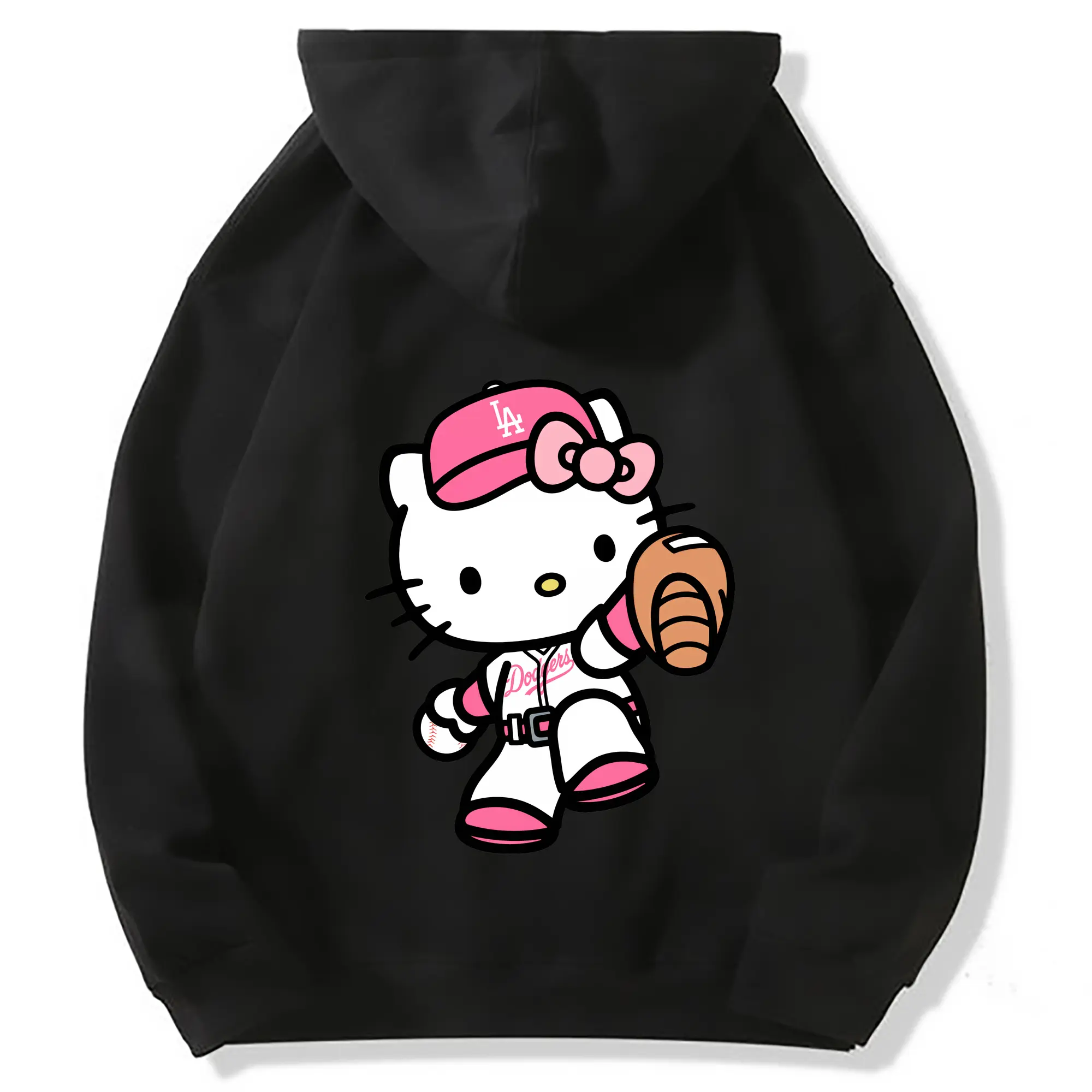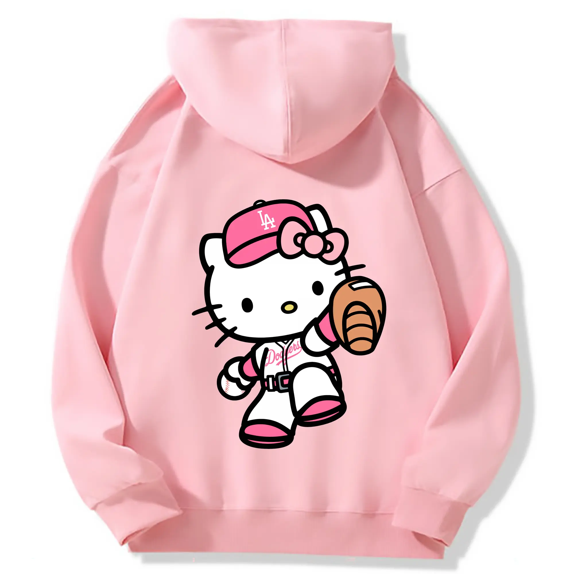 Pink Hello Kitty Play Baseball Los Angeles Dodgers - Premium Hoodie With Back Heat Transfer Print – 56.1% Cotton, 43.9% Polyester – Soft, Durable & Stylish – Perfect For Sports, Casual & Everyday Wear