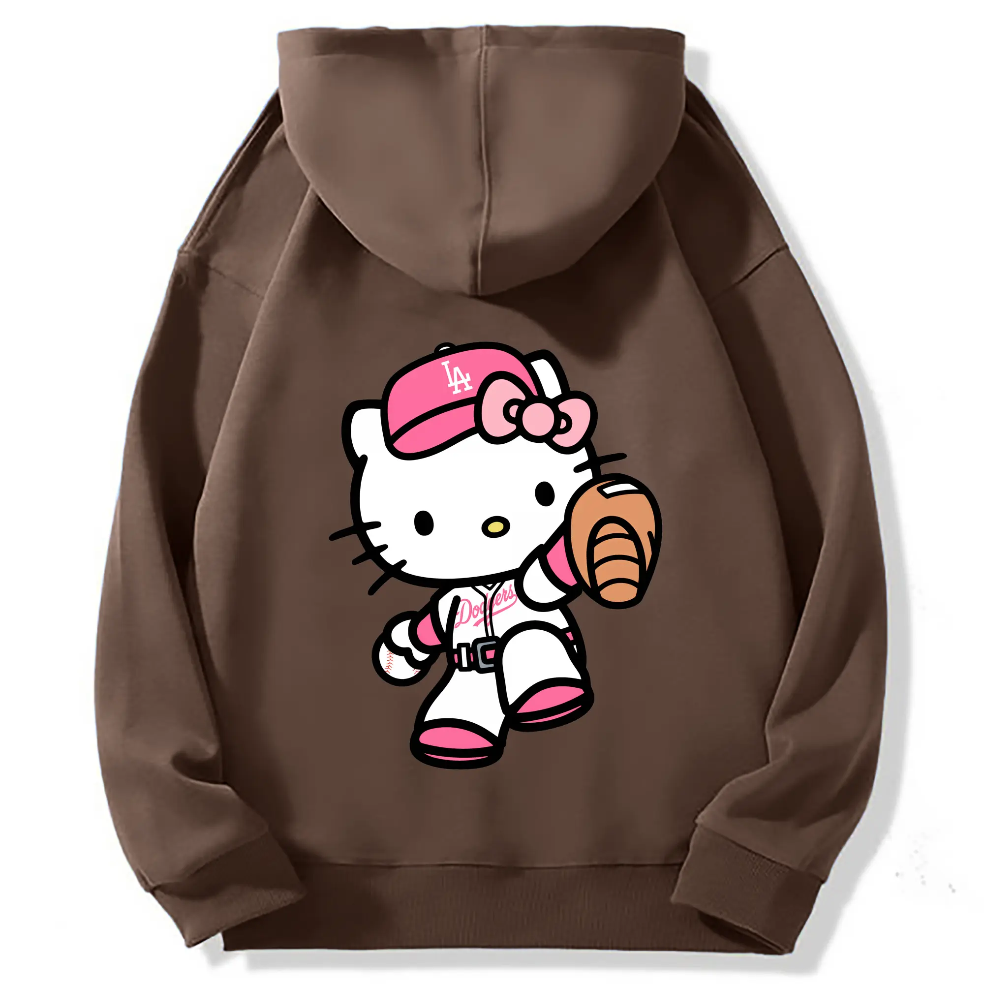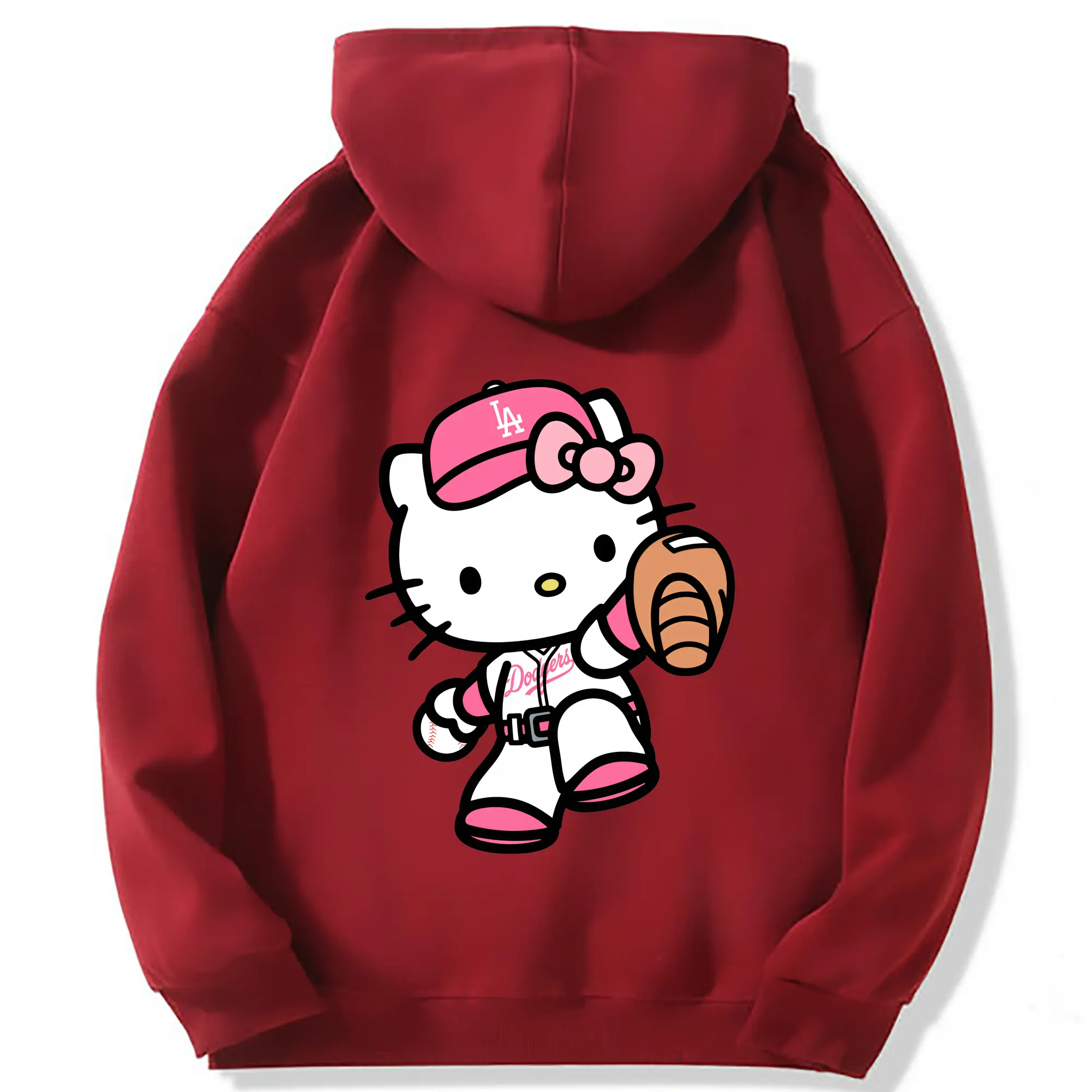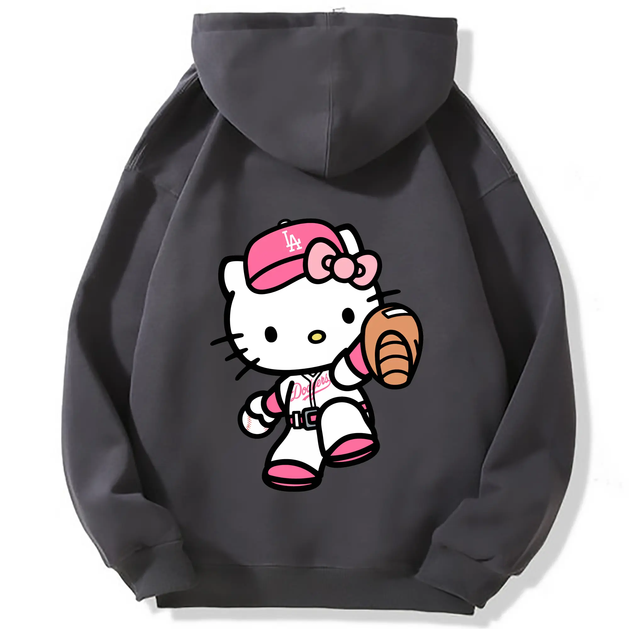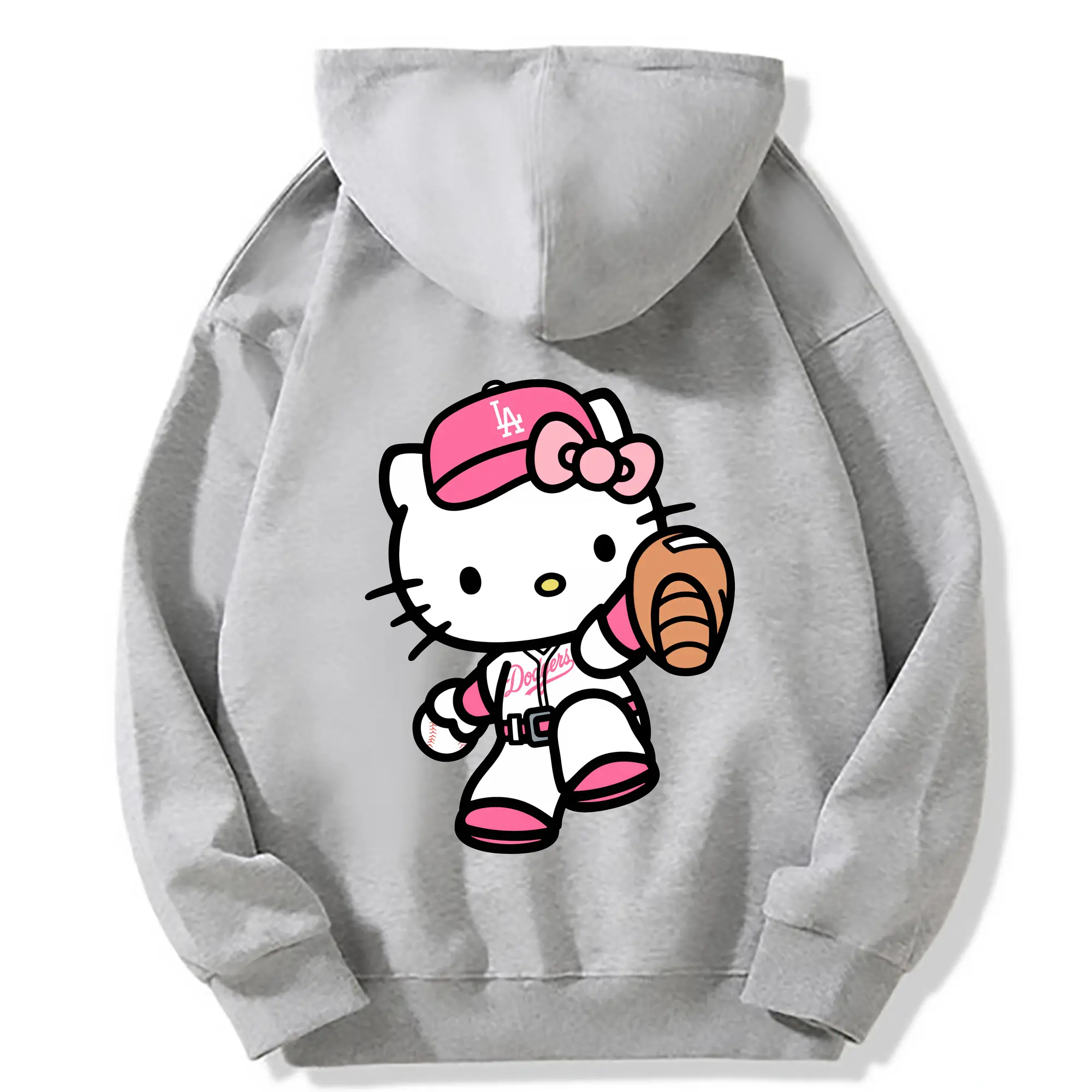 Pink Hello Kitty Play Baseball Los Angeles Dodgers - Premium Hoodie With Back Heat Transfer Print – 56.1% Cotton, 43.9% Polyester – Soft, Durable & Stylish – Perfect For Sports, Casual & Everyday Wear