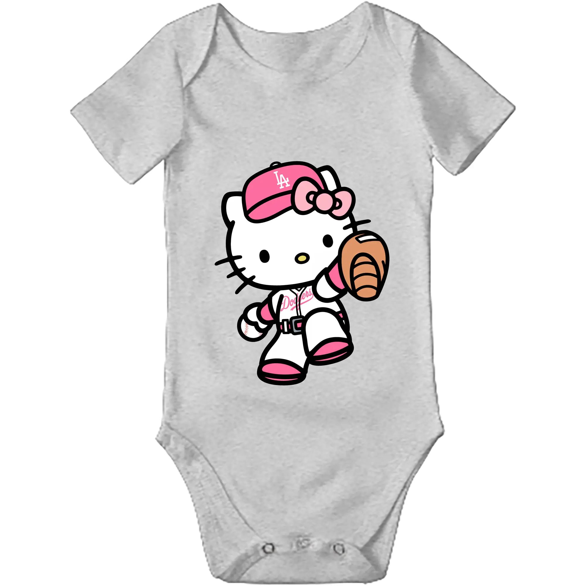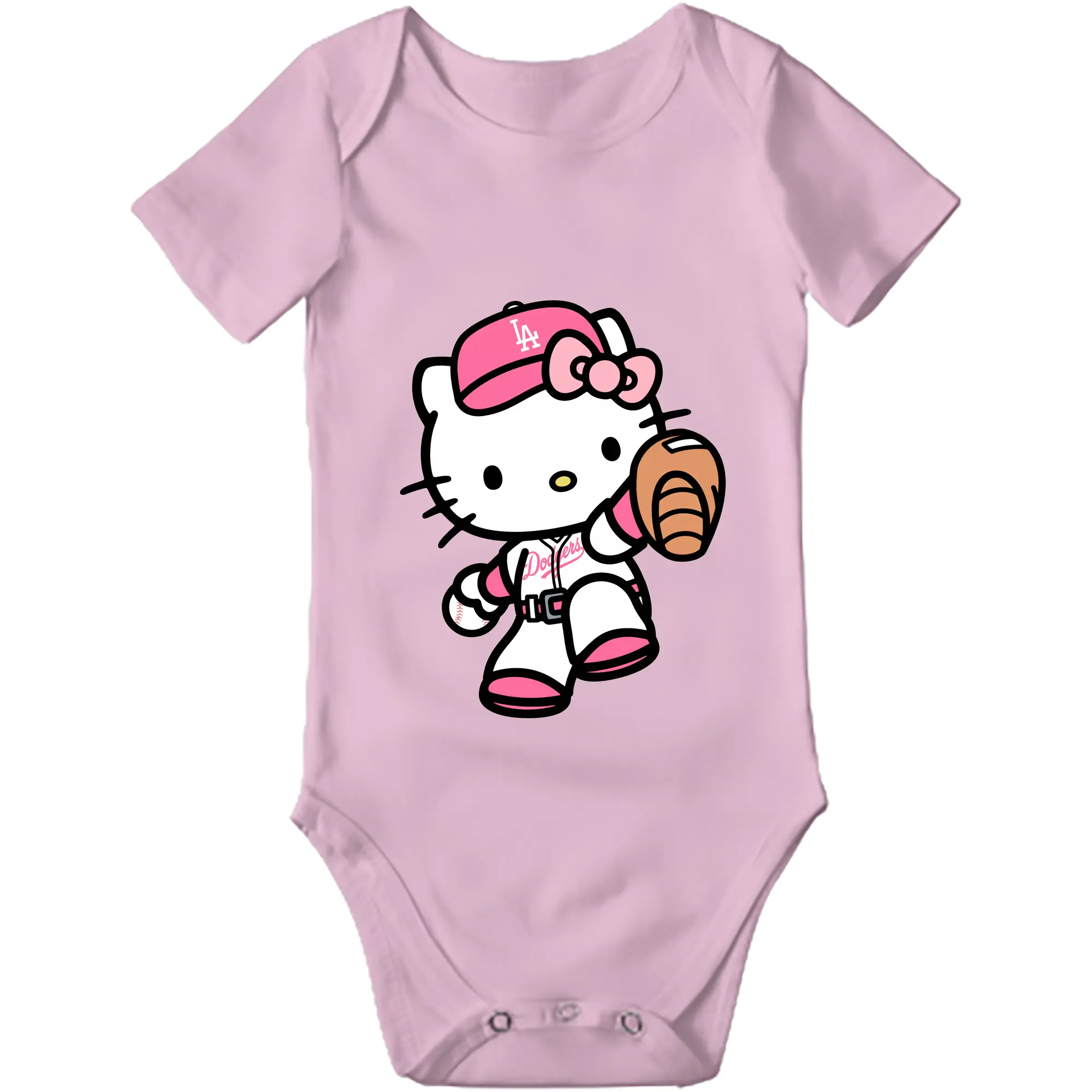 Pink Hello Kitty Play Baseball Los Angeles Dodgers - Baby Short Sleeve Romper – 100% Cotton Soft & Breathable Digital Print Onesie With Easy Snap Closure And Envelope Shoulder – Comfortable For Daily Wear & Travel