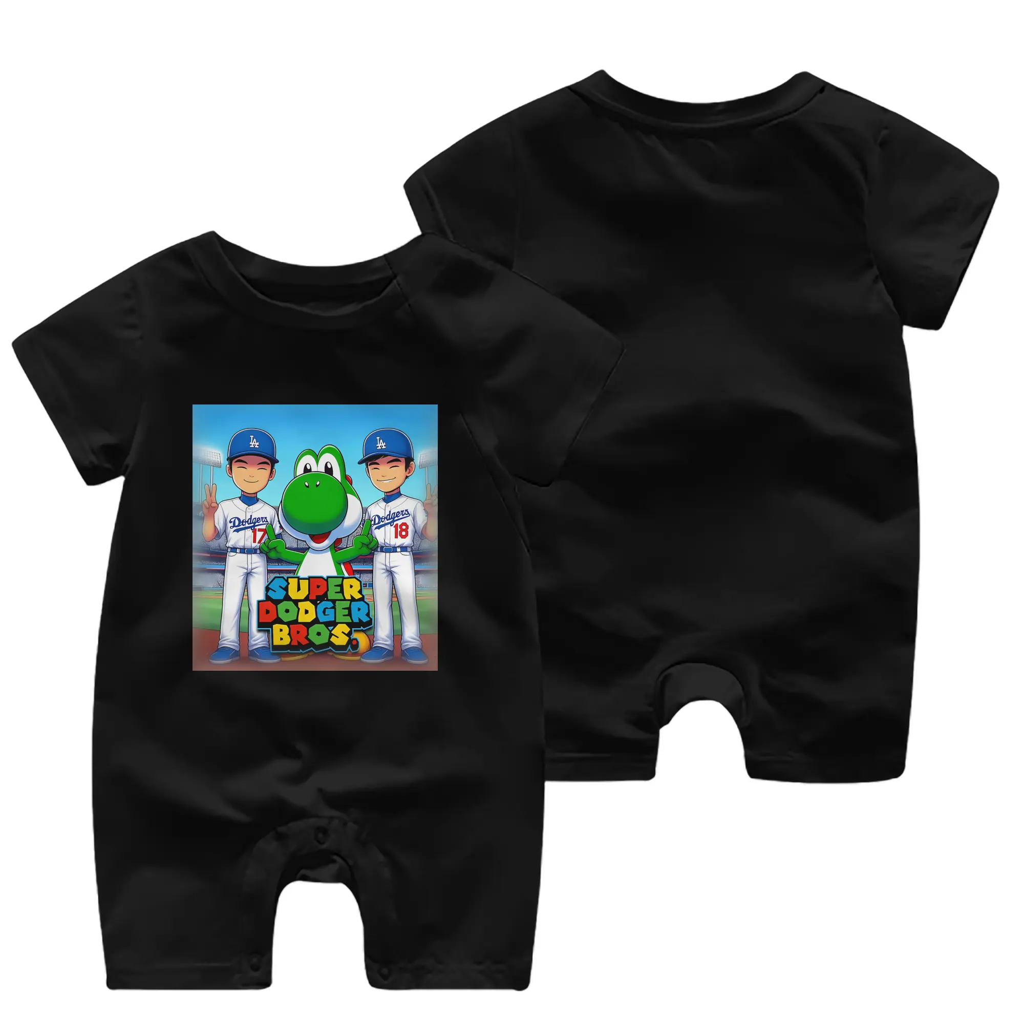 The Super Dodger Bros Los Angeles Baseball - Baby Short Sleeve Onesie – 100% Cotton Soft & Breathable Digital Print Romper – Double-Sided Print, Snap Closure For Easy Diaper Changes – Comfortable For Boys & Girls