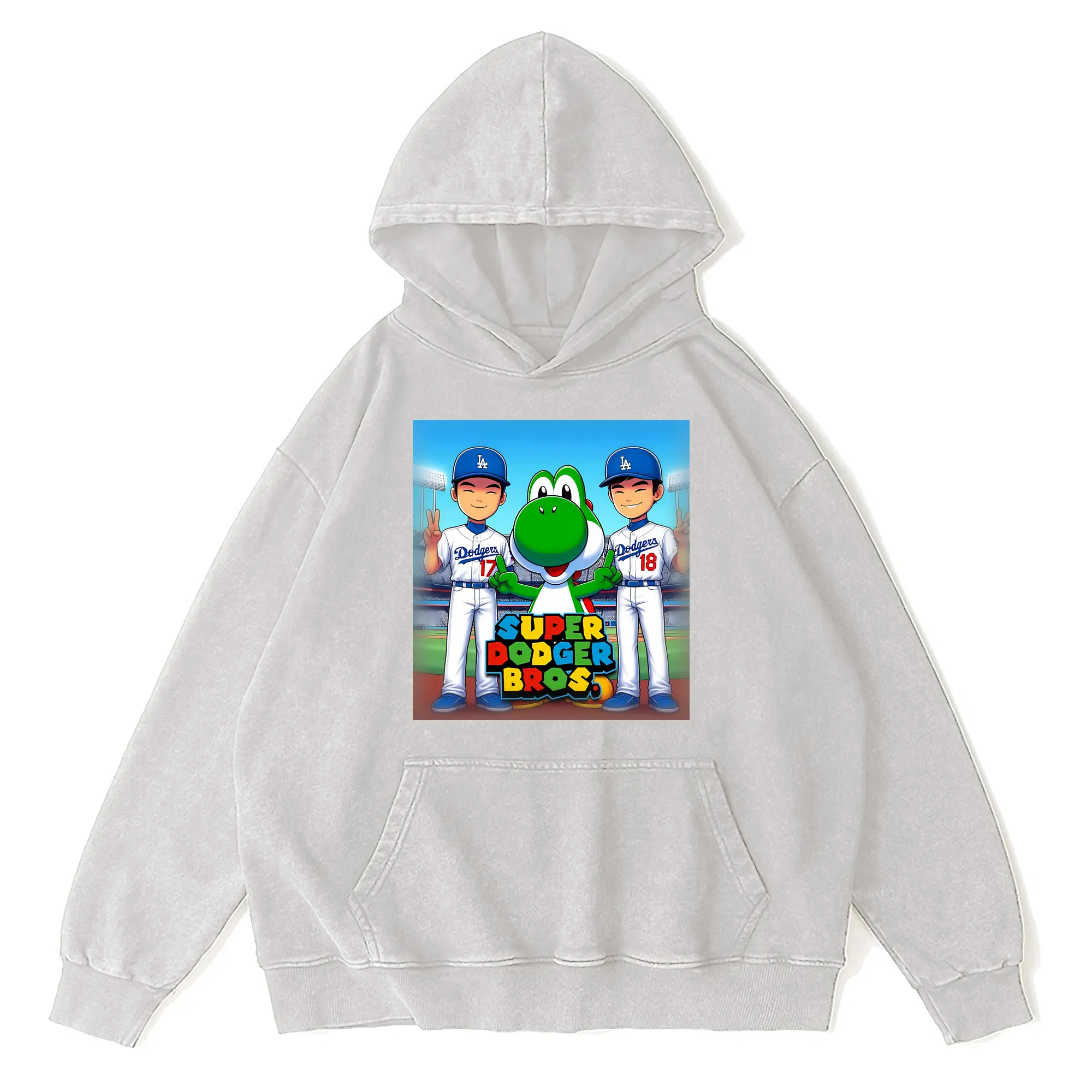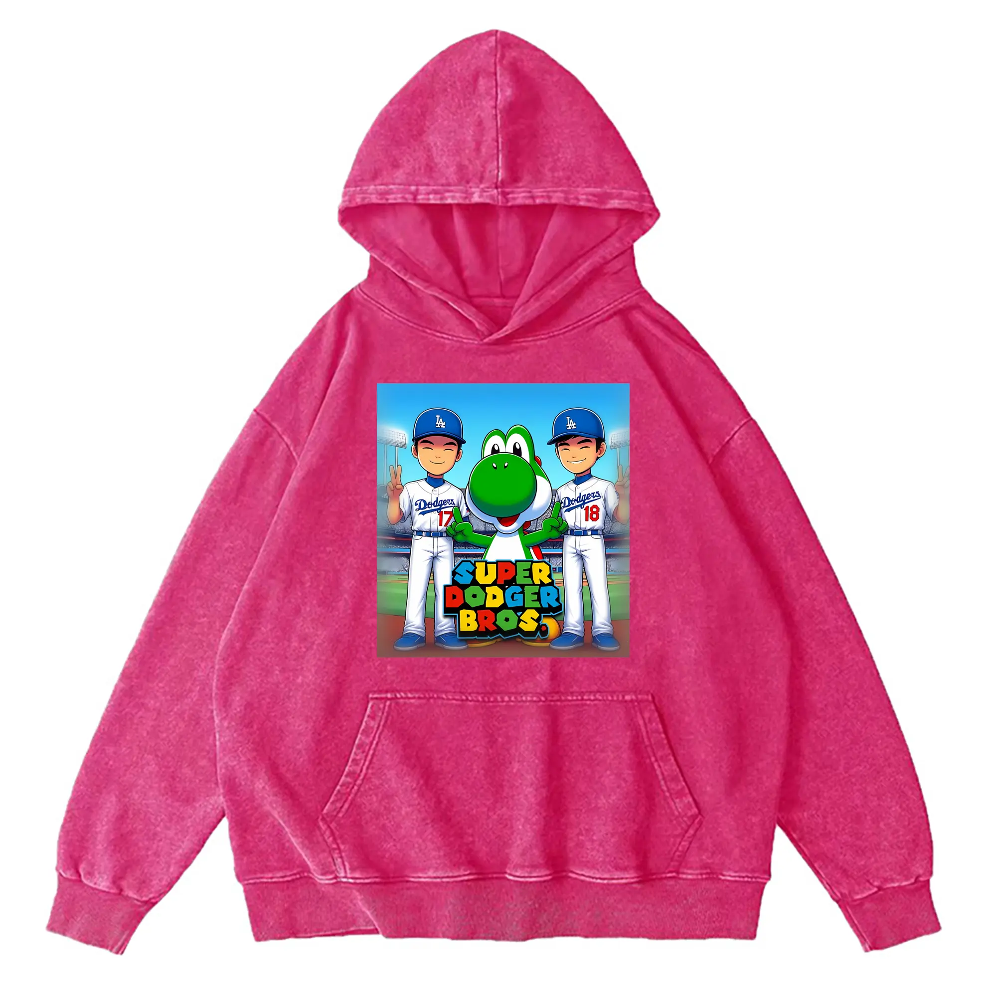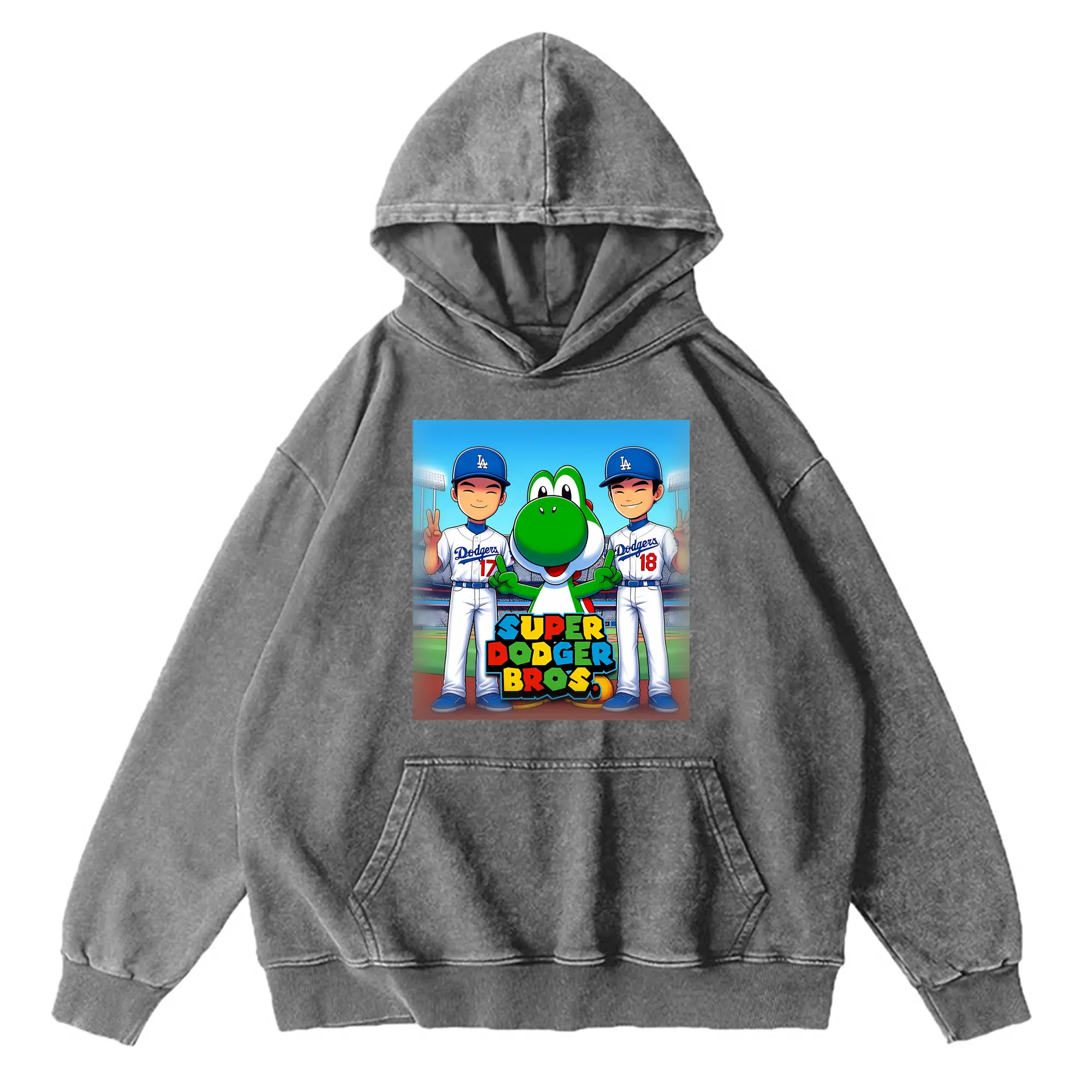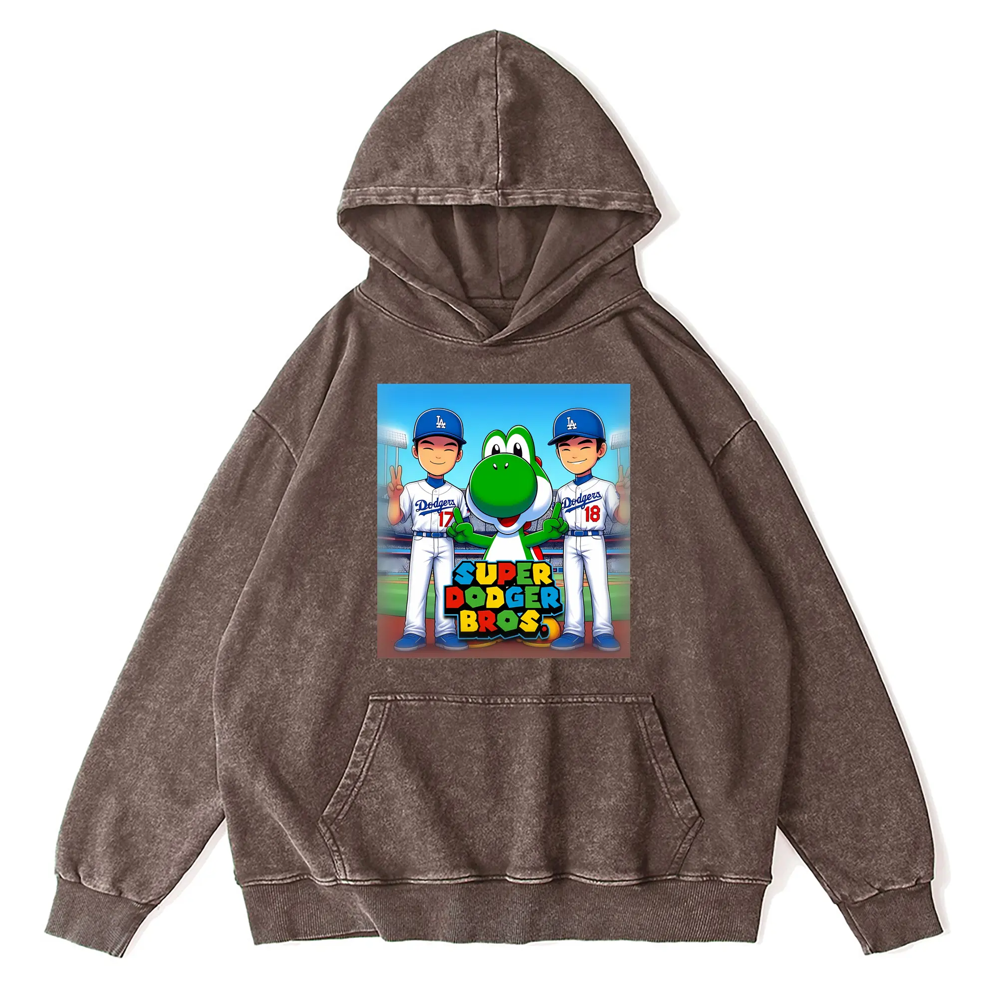 The Super Dodger Bros Los Angeles Baseball - Vintage Washed Wax-Dyed Hoodie – 80% Cotton, 20% Polyester – Soft, Durable & Stylish – Perfect For Sports, Casual & Everyday Wear